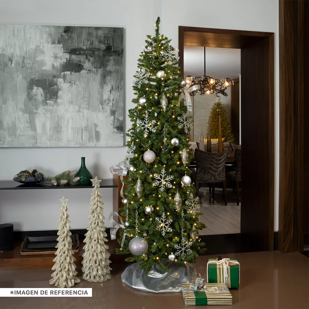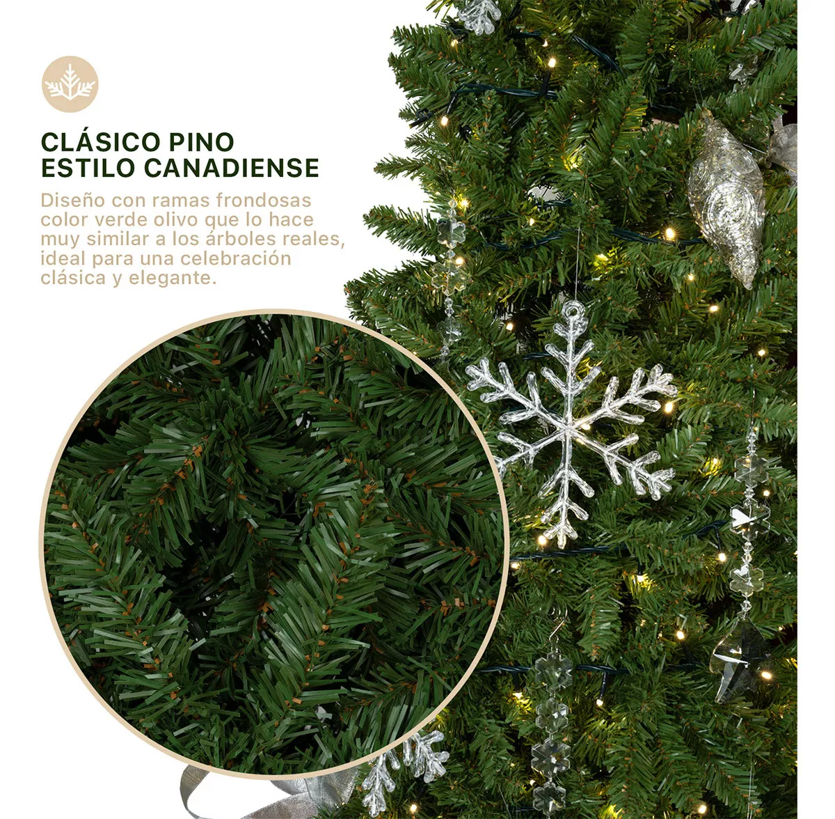 Nuestros pinos artificiales de colores elegantes son de apariencia y textura suave, brindan un aspecto frondoso y sofisticado, perfectos para una decoración tradicional navideña en cualquier espacio. Hazlos lucir increíbles con tu decoración favorita.