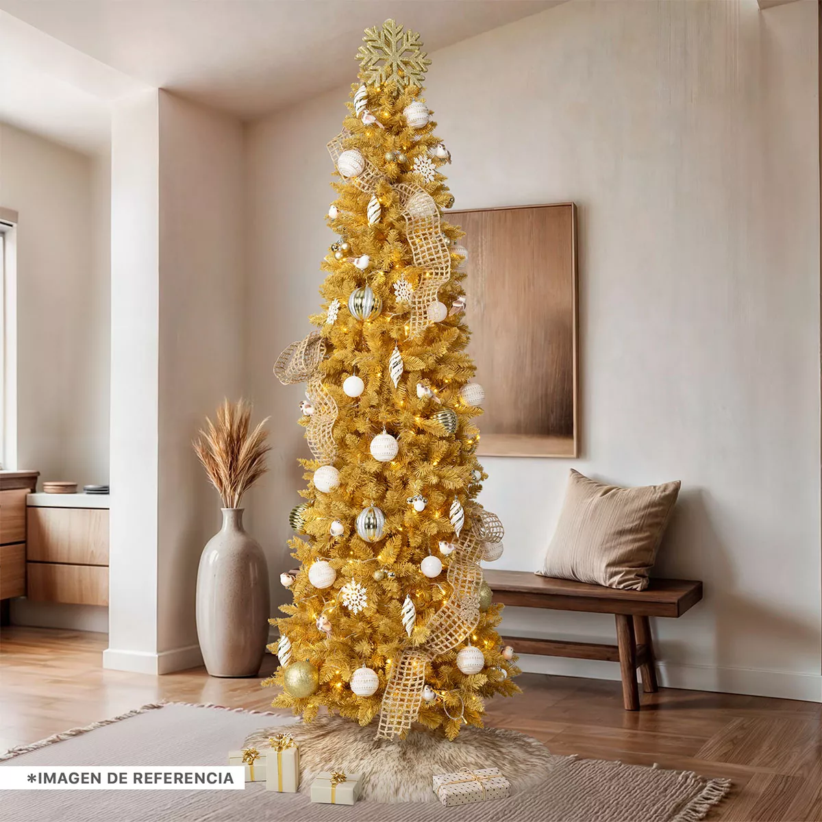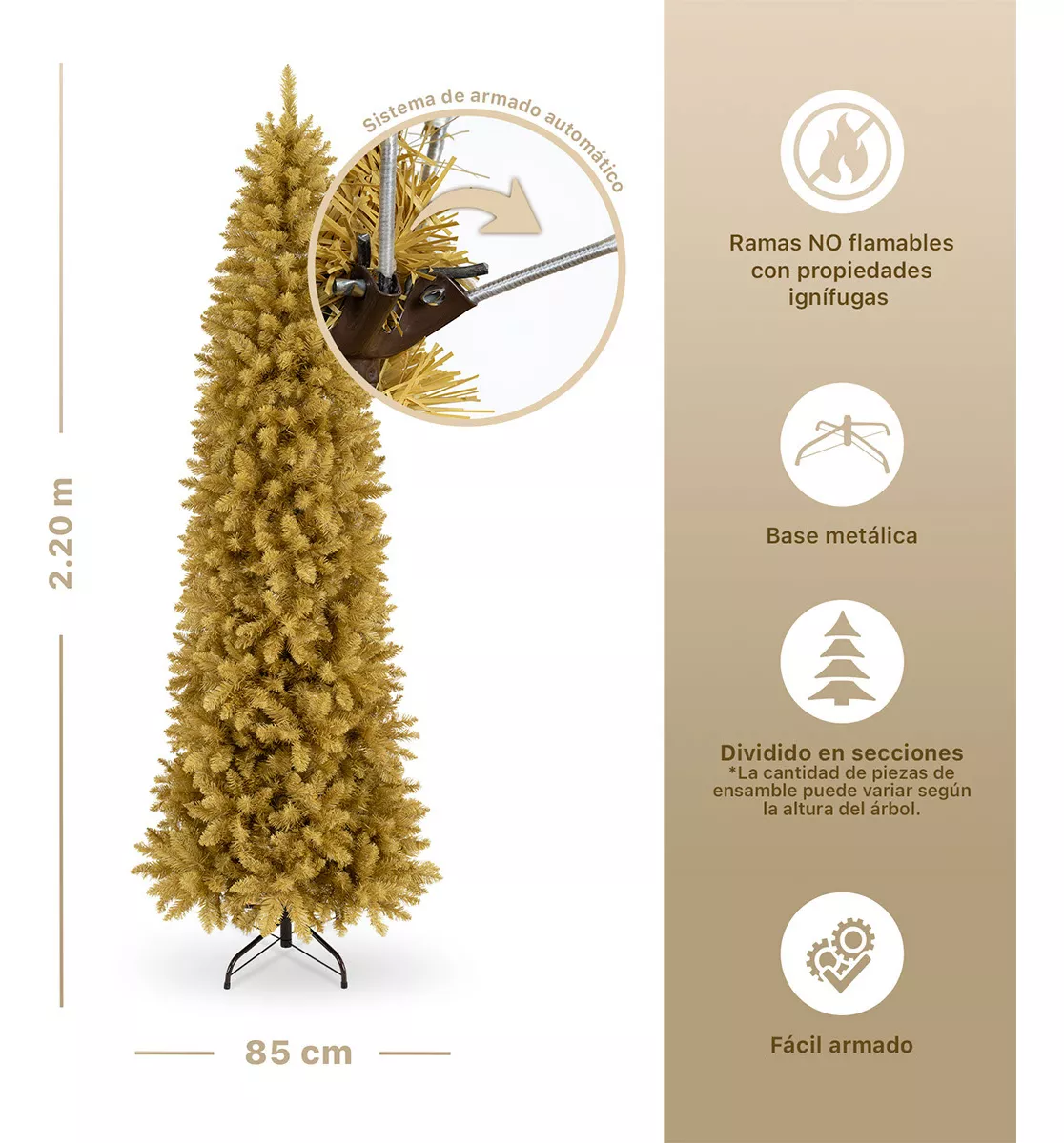 • ASPECTO COMPACTO Y FRONDOSO: Gracias a su diseño delgado, nuestro pino navideño se adapta a cualquier rincón de tu hogar, ocupando poco espacio mientras mantiene un aspecto frondoso y elegante.