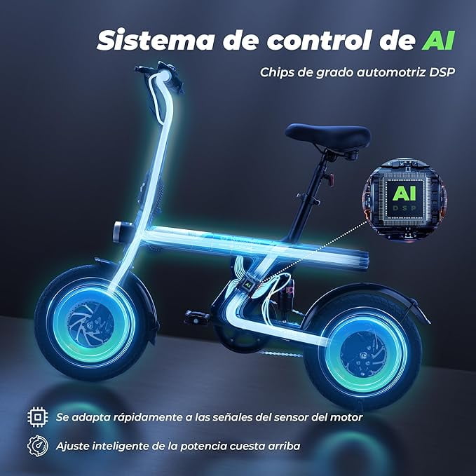 • 【Smart Uphill】- Una e-bike de 14 pulgadas no tiene por qué ser tan ágil, pero lo es. Nuestro motor de 500W integra a la perfección algoritmos inteligentes. Conquista fácilmente colinas con reconocimiento automático y asistencia a medida. ¡Experimenta una subida fácil de 15° con una velocidad máxima de 32KM/H!