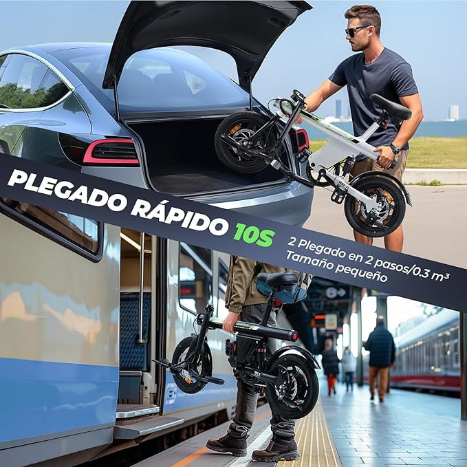 【Outstanding Portability】- Se enciende fácilmente sin llave, el manillar, los pedales y el asiento ajustable en altura de la mini e-bike U1 requieren un espacio de almacenamiento mínimo (<0,15m³). Tanto si quieres guardarla en el maletero de tu coche, como si quieres usarla en un ascensor o mantenerla ordenada en tu apartamento, es la primera e-bike ideal para ti.
