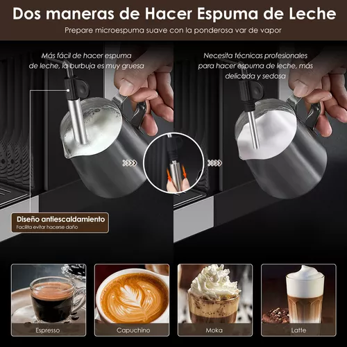 - Espumador de leche premium: Varita ajustable de acero inoxidable para obtener espuma suave y cremosa