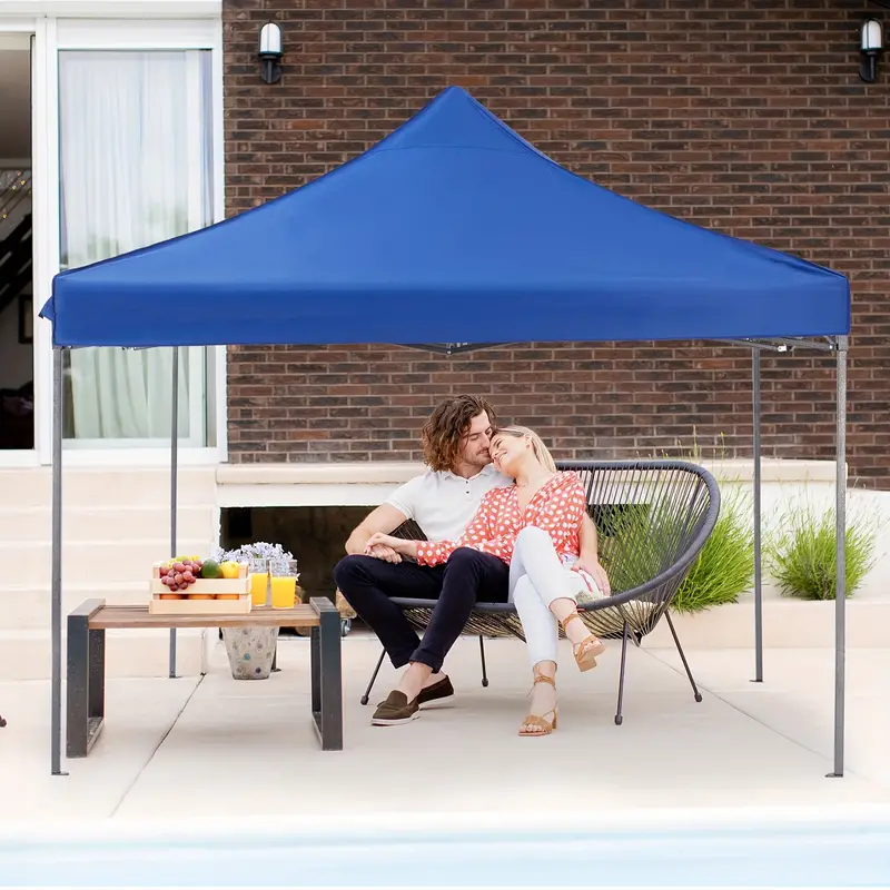 Carpa con dosel, refugio portátil emergente para exteriores de 10 x 10 pies, fácil cierre central de 1 empuje, protección UV y bolsa de transporte.