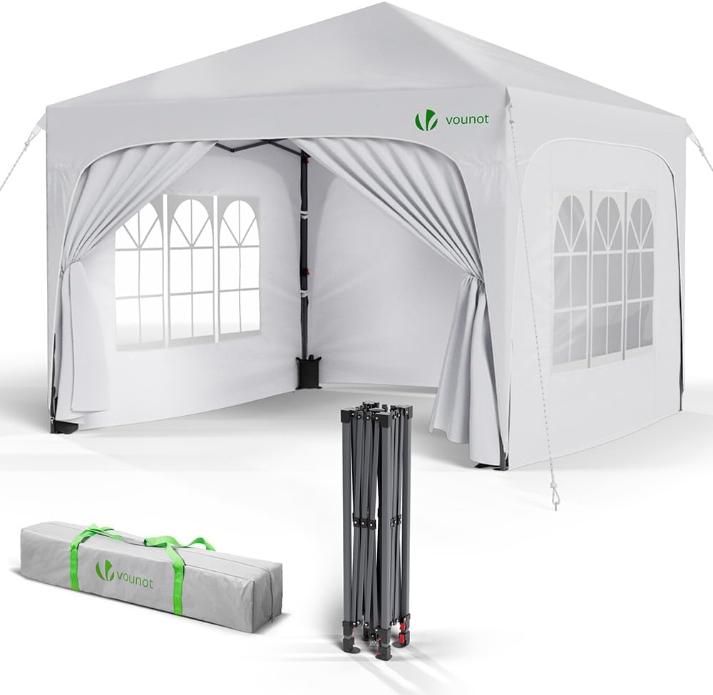 - MULTIUSO Y PRÁCTICO: Equipada con botones mejorados para evitar pellizcos en los dedos y ganchos fuertes para asegurar las esquinas firmemente, la glorieta es práctica y segura, proporcionando refugio temporal para diversas actividades en jardines, patios, terrazas, playas, parques y mercados. También viene con una bolsa de transporte que facilita su almacenamiento y traslado.