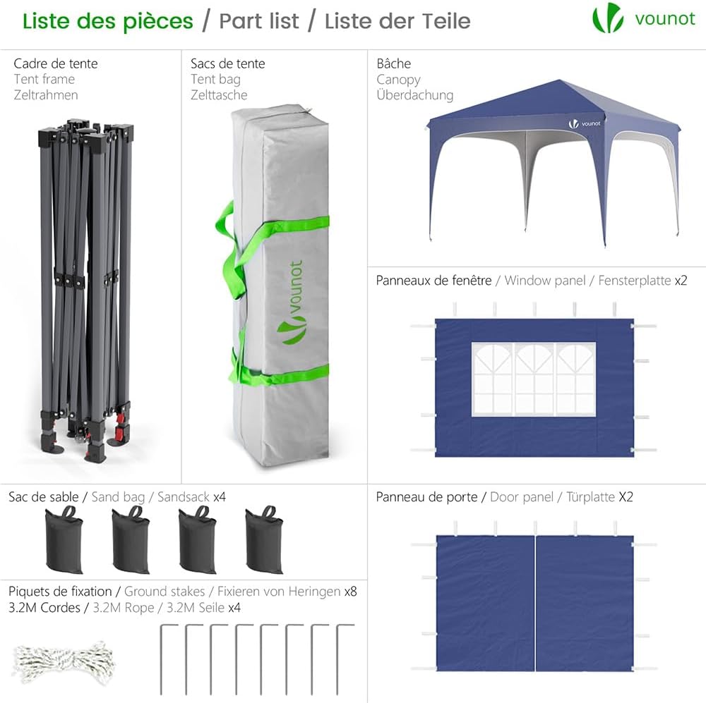 - IMPERMEABLE Y ANTI-UV: El techo del gazebo pop up está hecho de poliéster impermeable, que puede resistir eficazmente los rayos UV y la lluvia. No importa si hace sol o llueve, podrá disfrutar de un momento tranquilo y cómodo bajo nuestro pabellón.