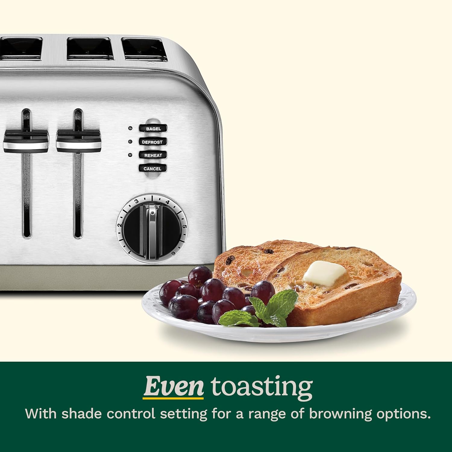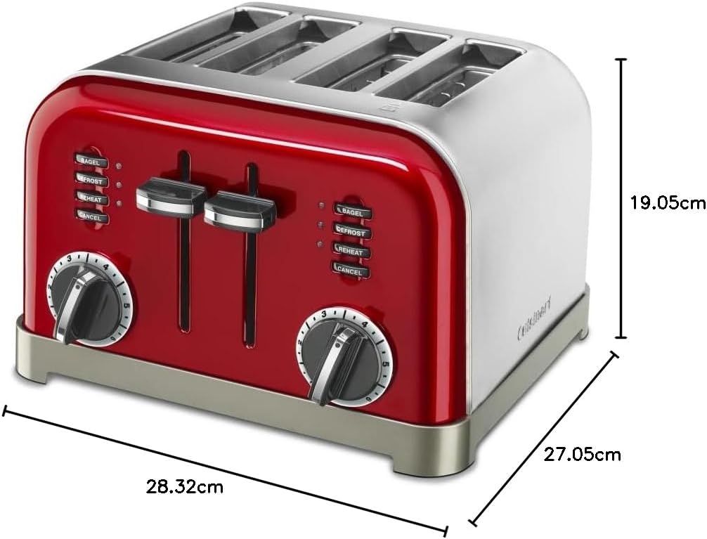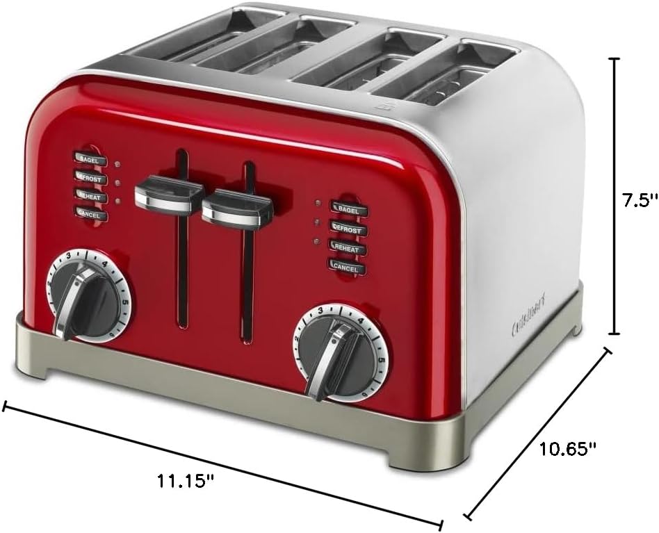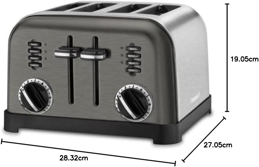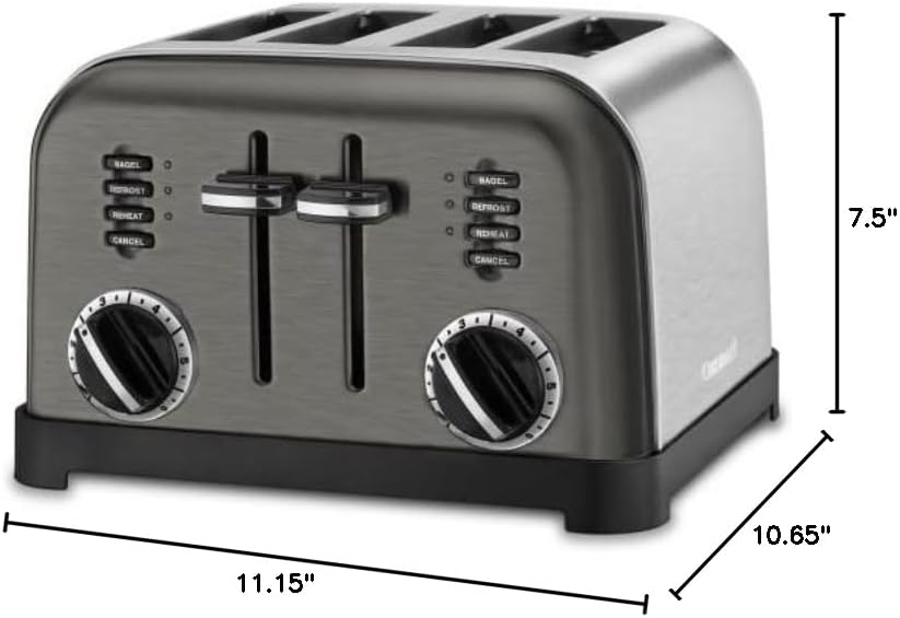 - Control personalizado: dos cuadrantes de tostador a 6 posiciones, botones de recalentamiento, descongelación y bagel con indicadores LED