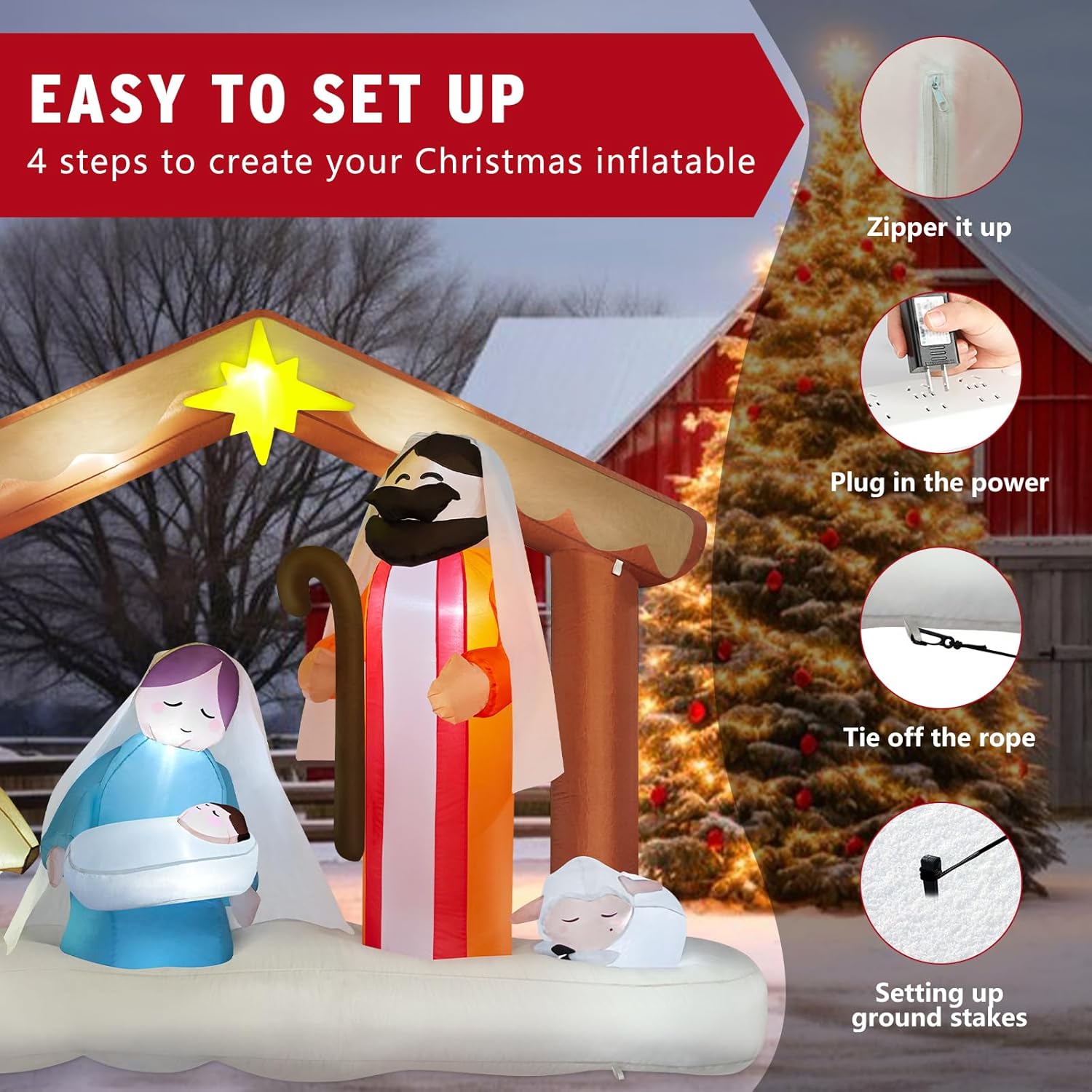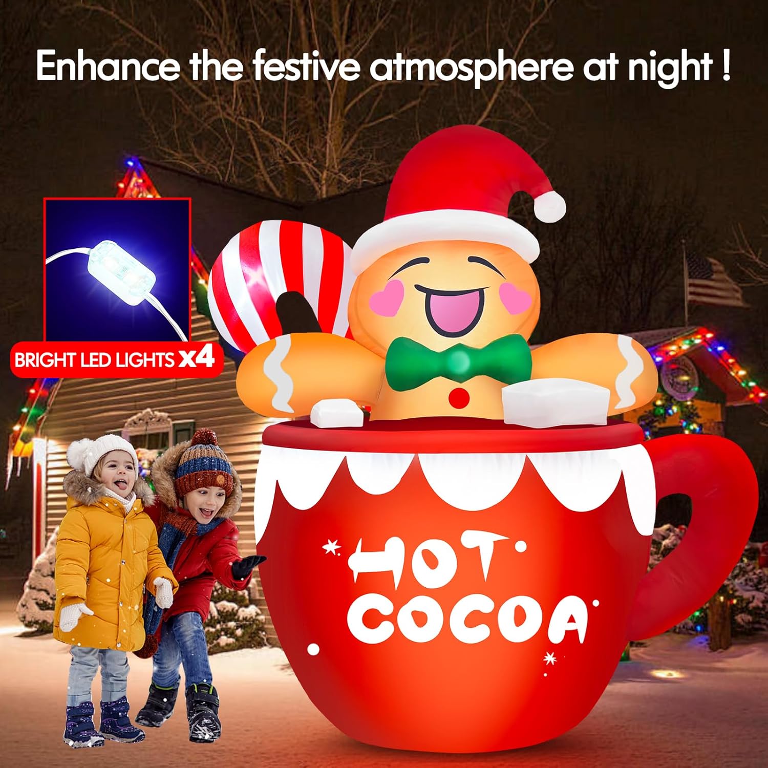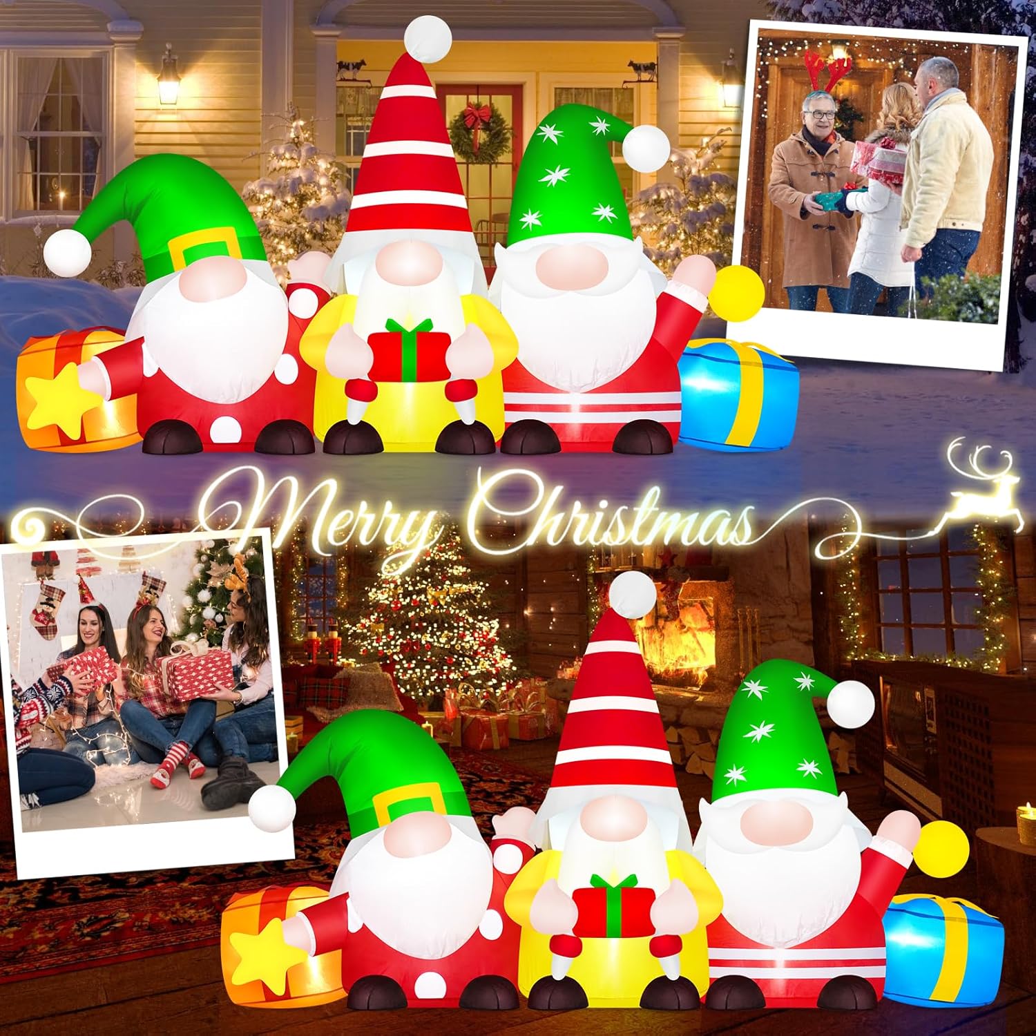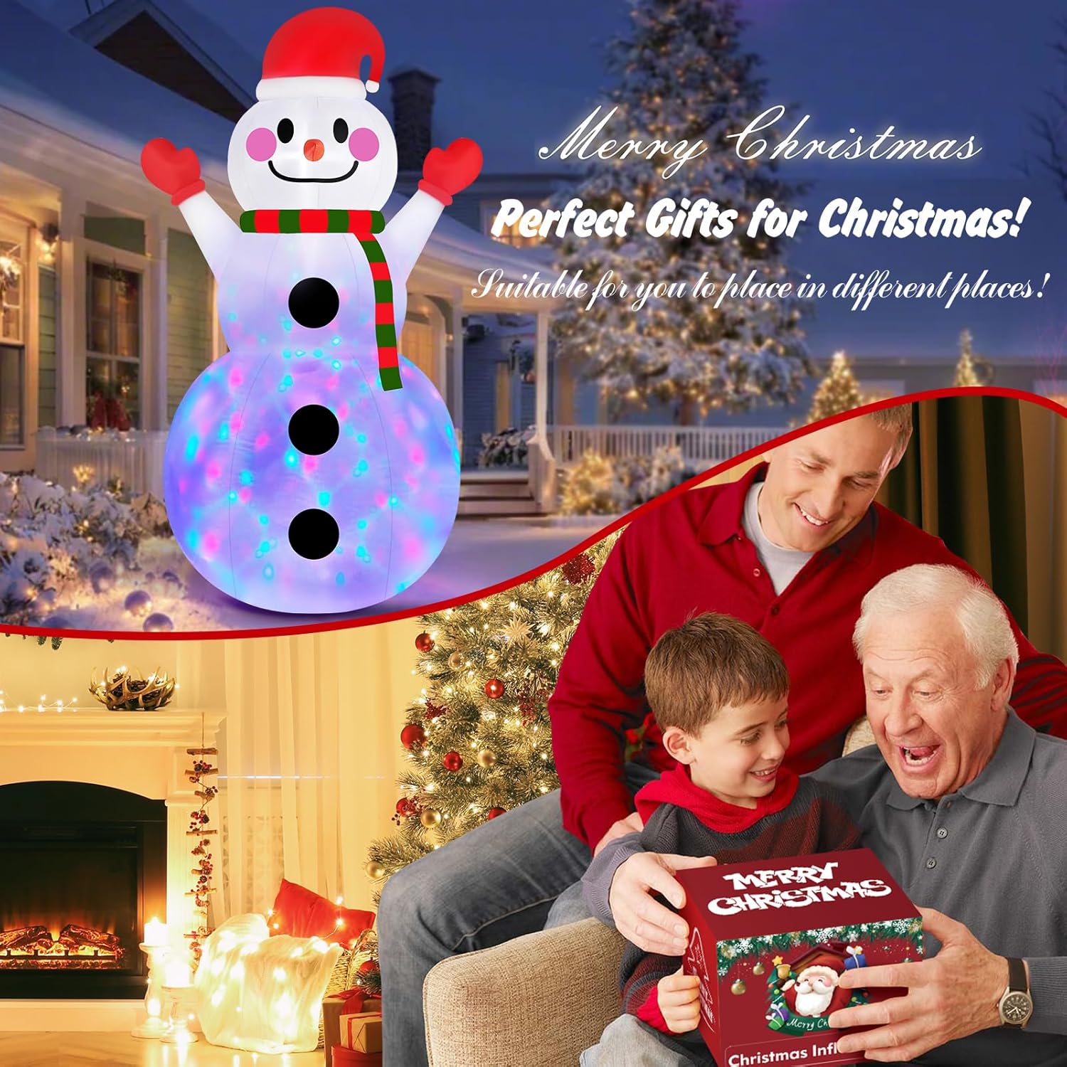 - Agregue un Ambiente Cálido: el inflable navideño de Danxilu para exteriores se desinfla y se pliega en nuestra caja de regalo incluida. Lo acompañará a usted y a su familia durante más de una Navidad. ¡Estas decoraciones inflables navideñas para exteriores son perfectas como fondo de fotos navideñas, creando un recuerdo cálido y divertido para familiares y amigos! La deslumbrante exhibición nocturna iluminará instantáneamente la atmósfera alegre de la Nochebuena y hará que su fiesta navideña sea más popular