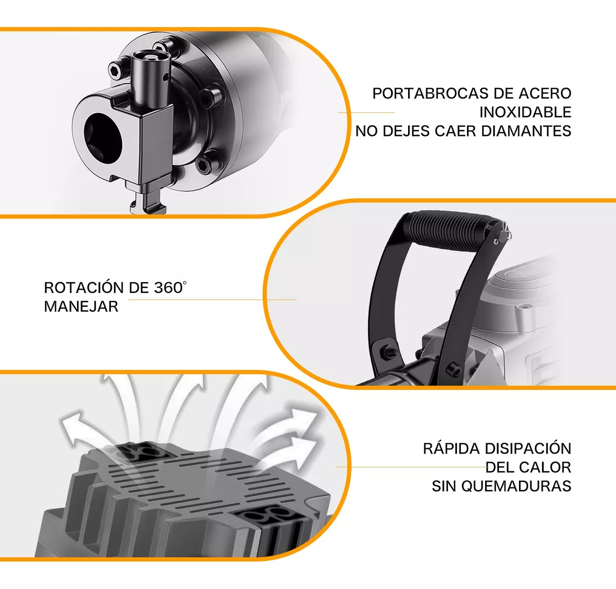 [diseño íntimo] el diseño de agarre de 360 grados puede proporcionar el empuje máximo. Diseño de ventilación razonable para evitar que la temperatura del motor, la Caja de cambios y la batería sea demasiado alta. La vibración se controla a través del mango Auxiliar y el sistema de chuck, lo que le hace sentir más cómodo y fácil.
