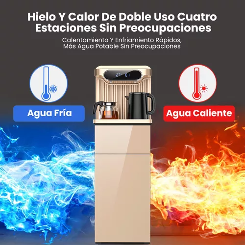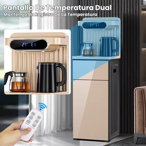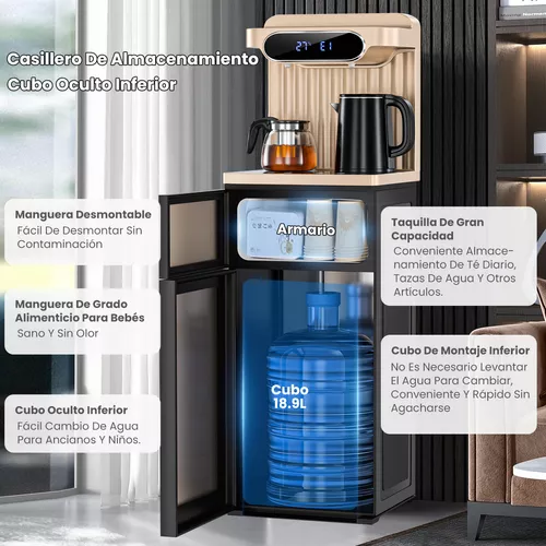 CARGA INFERIOR: Este dispensador de agua para botellas de 5 a 20 litros permite cambiar las botellas fácilmente sin levantar objetos pesados, giros incómodos o derrames descuidados, especialmente para aquellos que no pueden levantar botellas debido a limitaciones físicas, como problemas de espalda. La botella de 20 litros está llena de agua y es difícil de transportar. Simplemente conéctelo y deslícelo. Las botellas están ocultas detrás de la puerta del gabinete dispensador de agua, por lo que su dispensador de agua siempre mantendrá su apariencia elegante. Deje de comprar costosas botellas de agua de un solo uso y cámbiese a un dispensador de agua asequible que no sólo le permitirá ahorrar dinero sino que también evitará que el plástico de un solo uso acabe en los vertederos.
