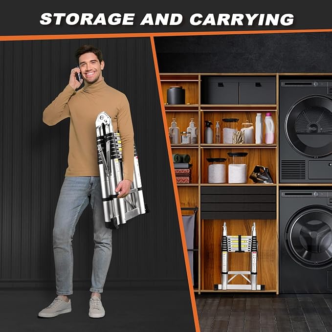 - 【Más fácil de transportar y mover】 la escalera telescópica es tan portátil y compacta que se adapta perfectamente a tu autocaravana, SUV, RV y cualquier tipo de vehículo. Se extiende muy grande y se pliega tan pequeña.