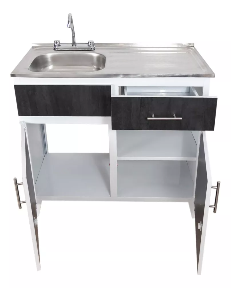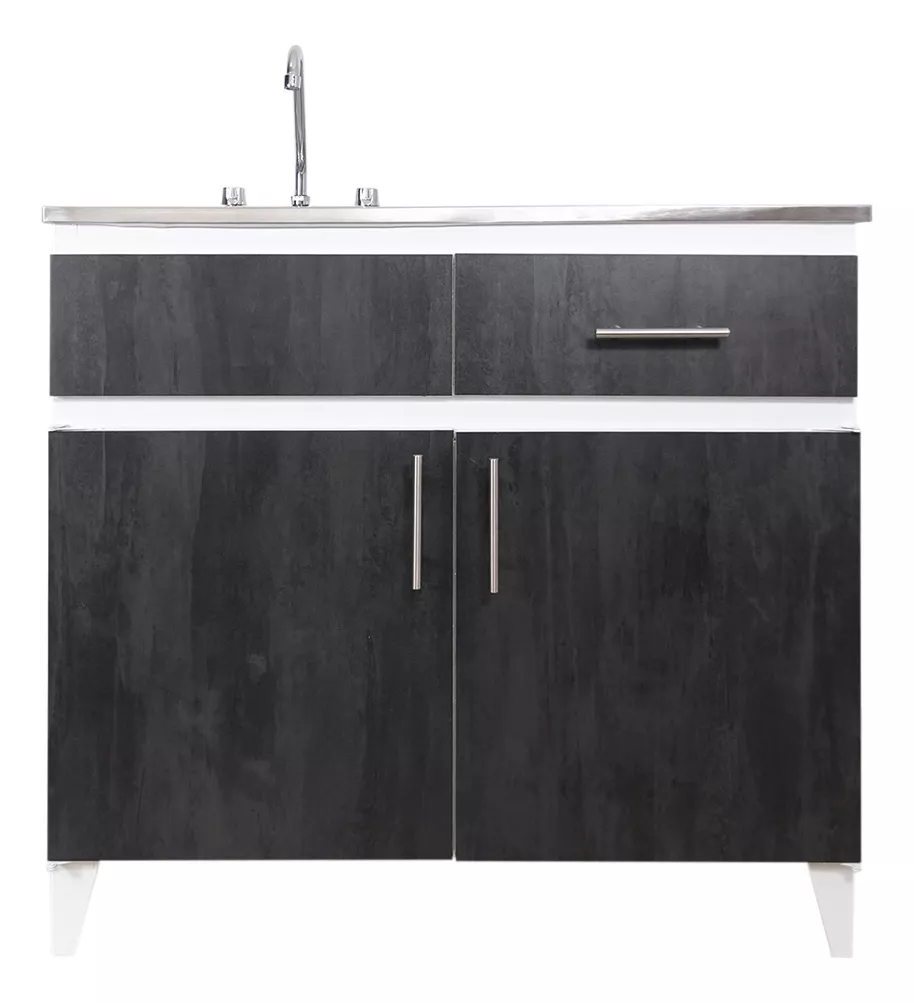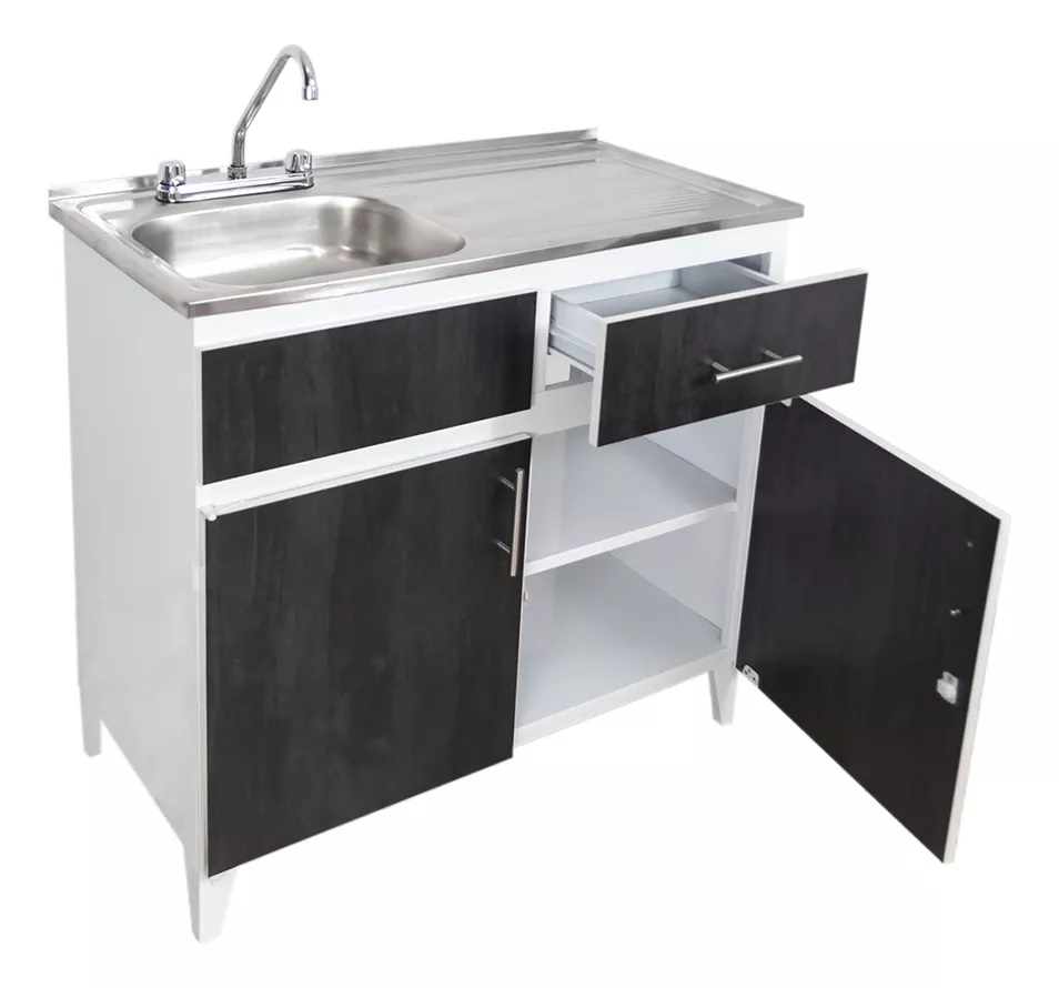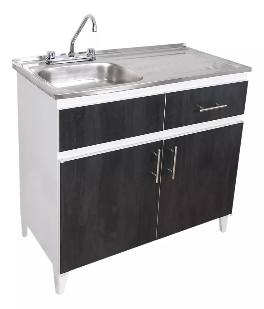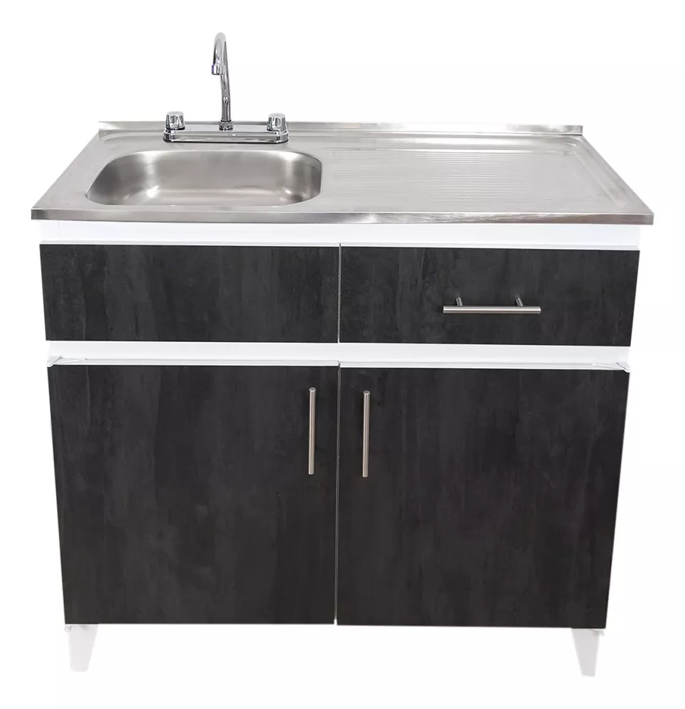Fregadero con mueble de lámina de acero, con puertas de melamina color TURMALINA de 1m de largo
