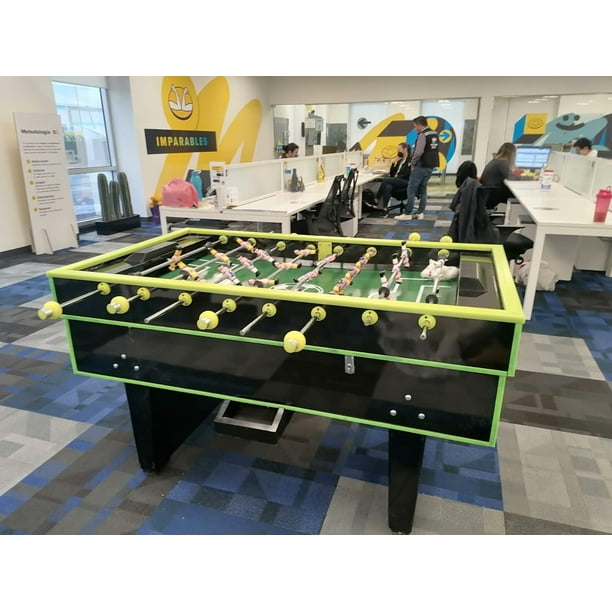 Futbolito, 10 pelotas, 8 varillas, 22 monos con tornillos y tuercas, 16 hules topes, 4 anillos de portero