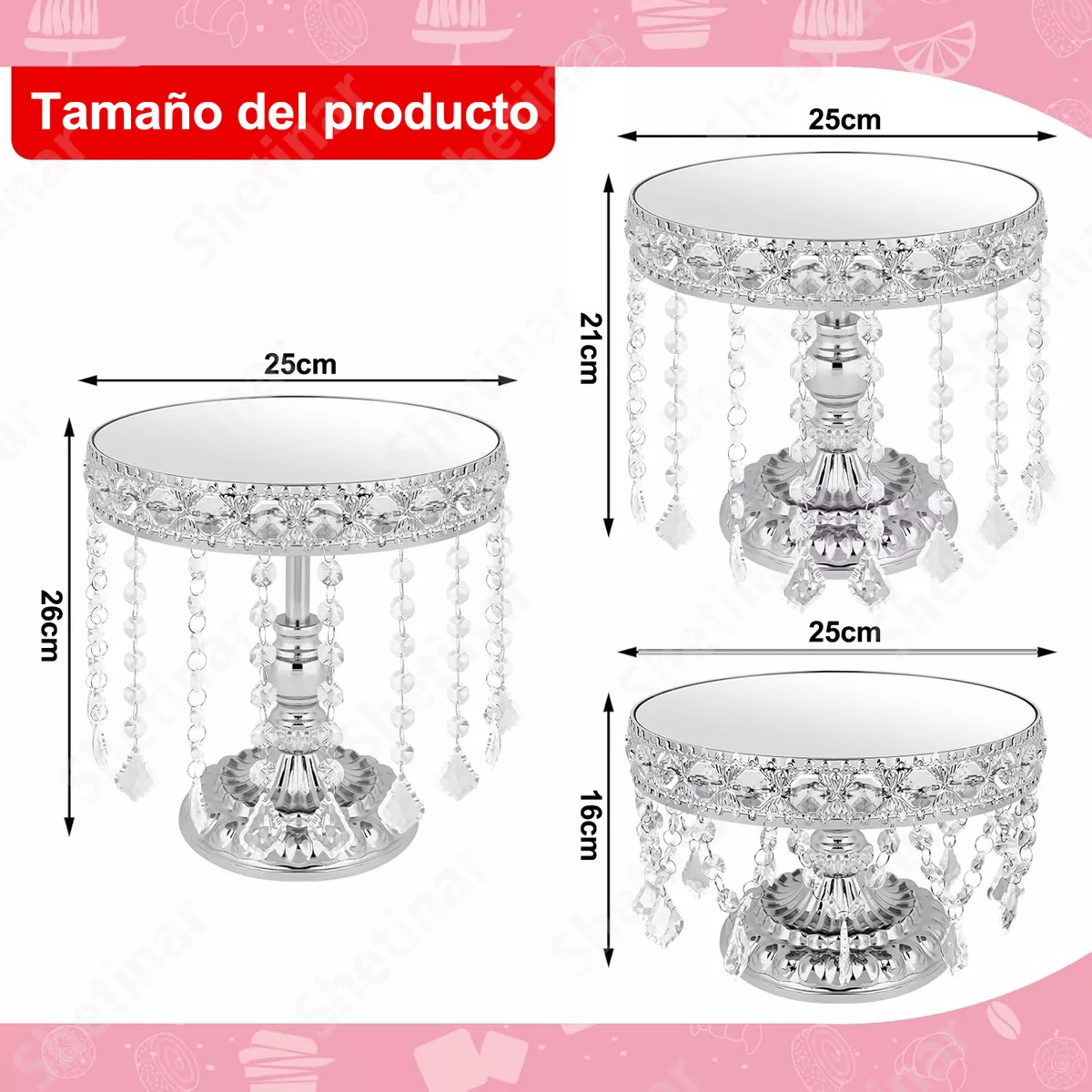 Lista de empaque: 3 bases, 3 bandejas de espejo, varios colgantes y accesorios.
