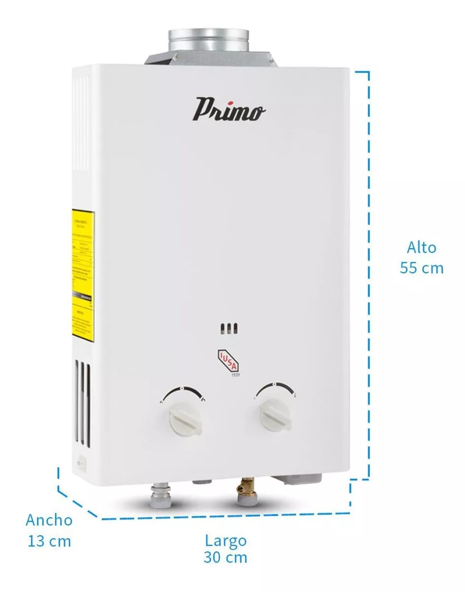 Contenido del paquete: 1 Calentador instantáneo Primo 6 l para gas L.P.