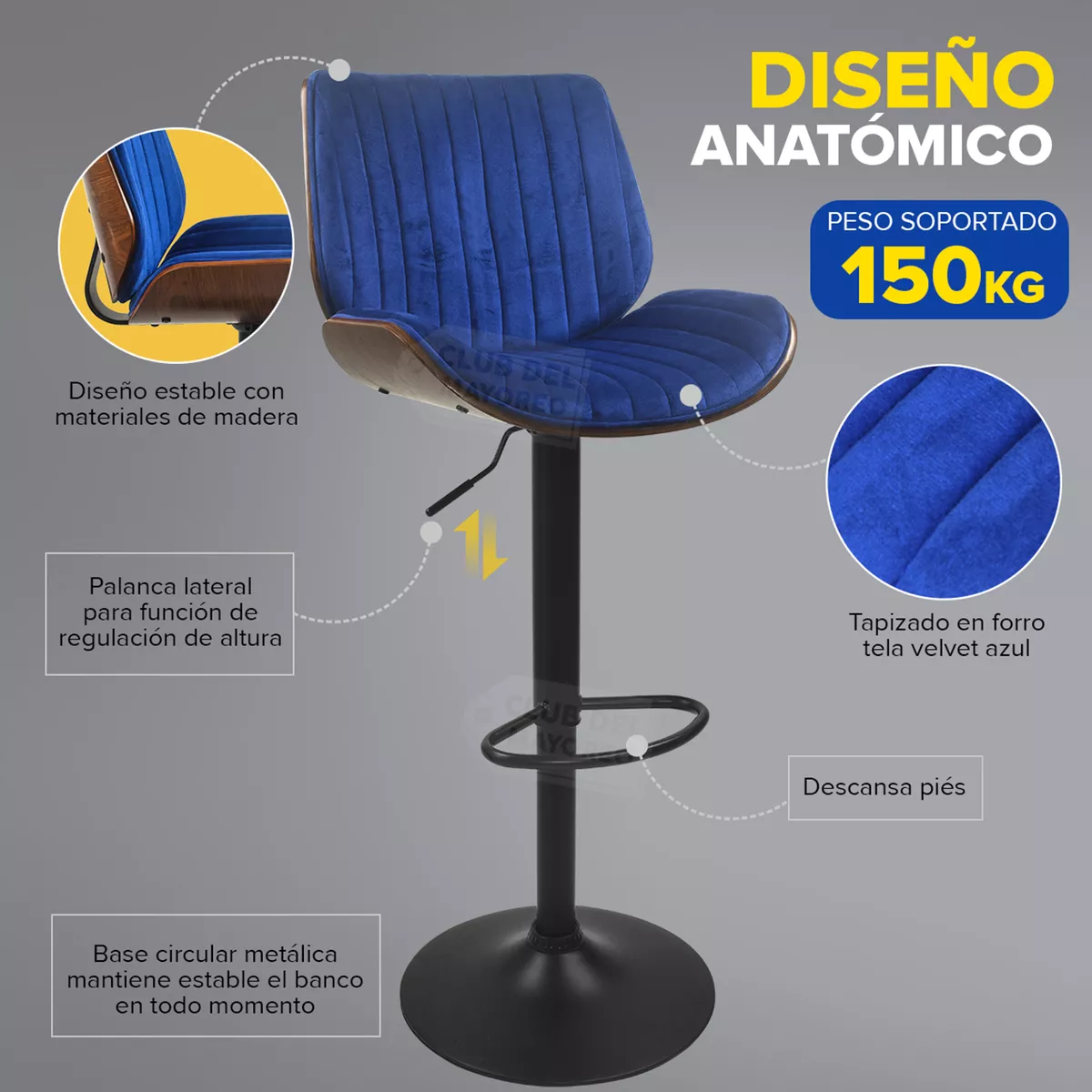 -Base circular que aporta estabilidad al banco, además de que cuenta con terminado antiderrapante.
