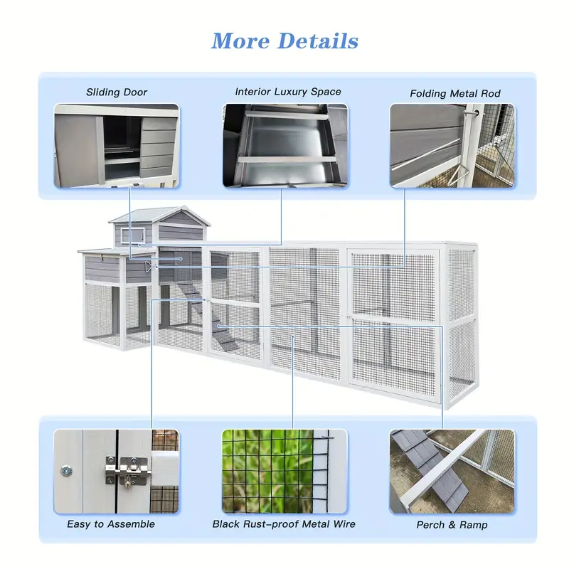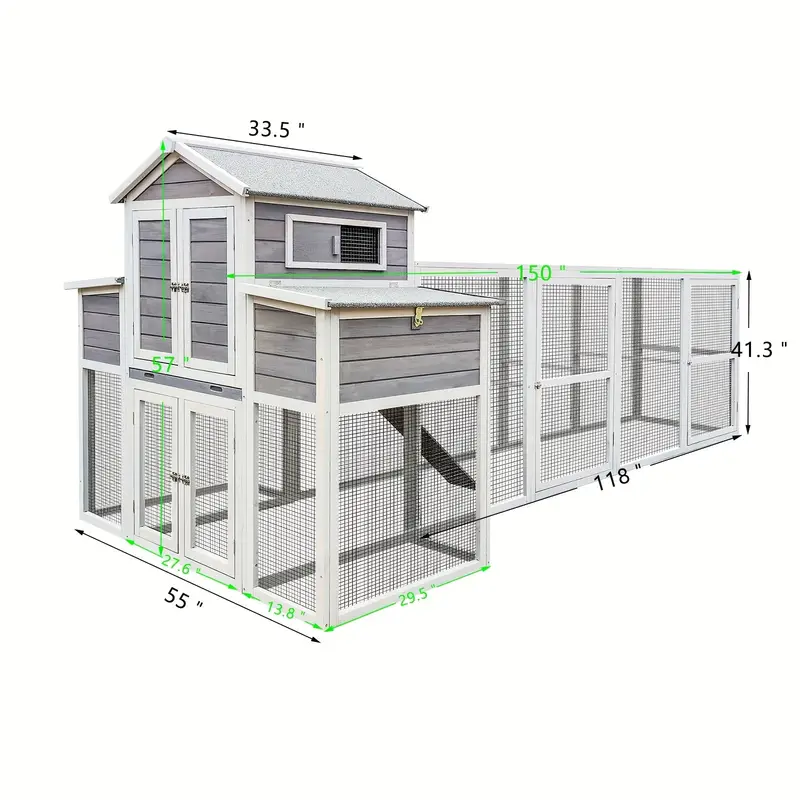 Jaula para gallinas de madera maciza extragrande de 150" con dos capas, con dos cajas nido y rampa, que proporciona un amplio espacio para moverse, adecuada para otros animales pequeños, bandejas extraíbles incorporadas para facilitar la limpieza