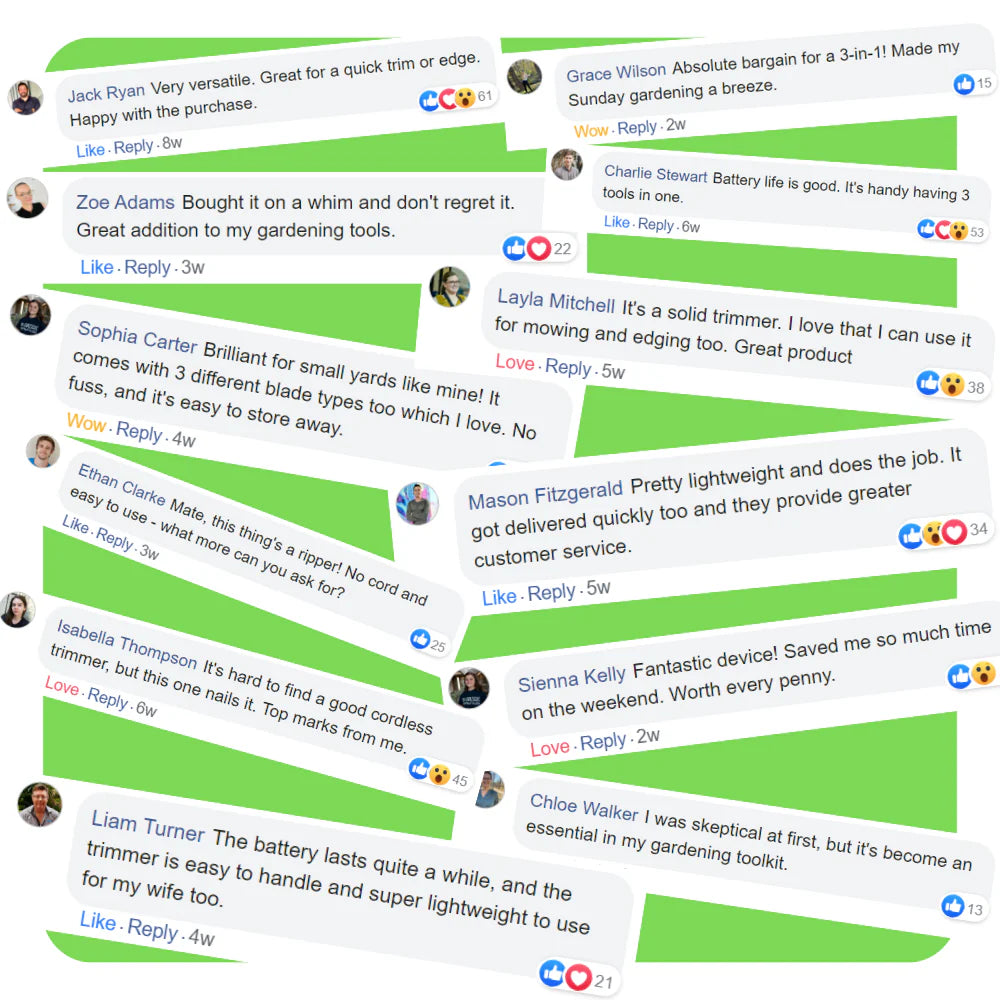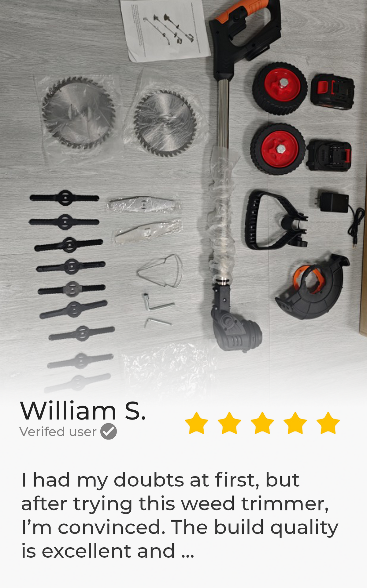 Ecológica y potente: tres cuchillas robustas para un corte preciso, con menos ruido y cero emisiones contaminantes.