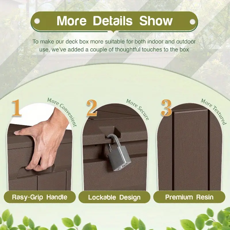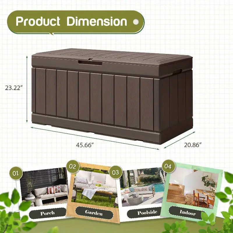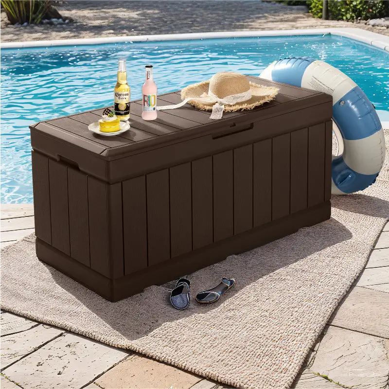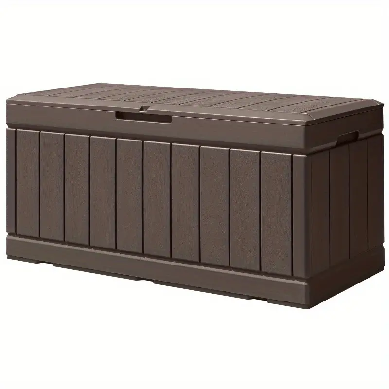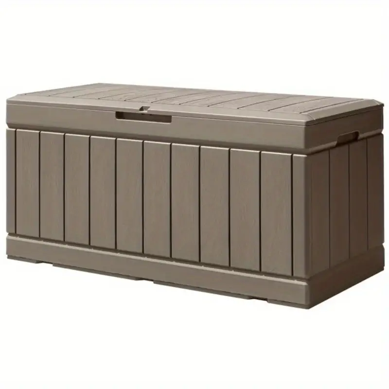 Caja de almacenamiento de cubierta de galón, caja grande de resina impermeable para exteriores con tapa con cerradura para muebles de patio, herramientas de piscina, equipos para exteriores y herramientas de jardinería