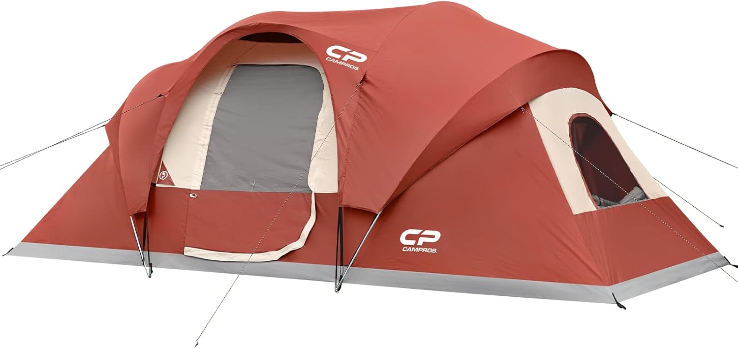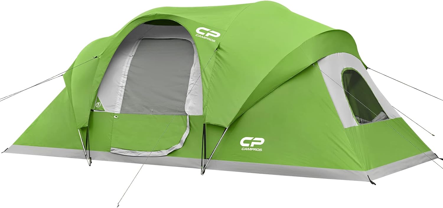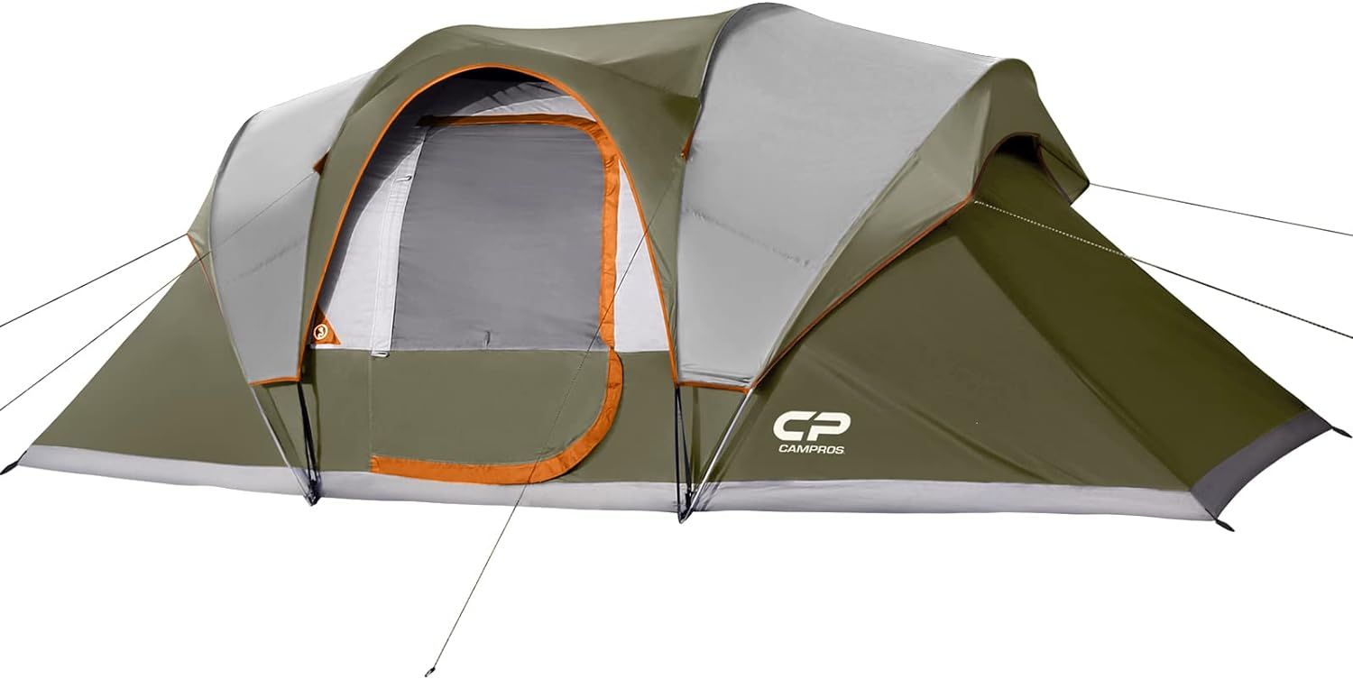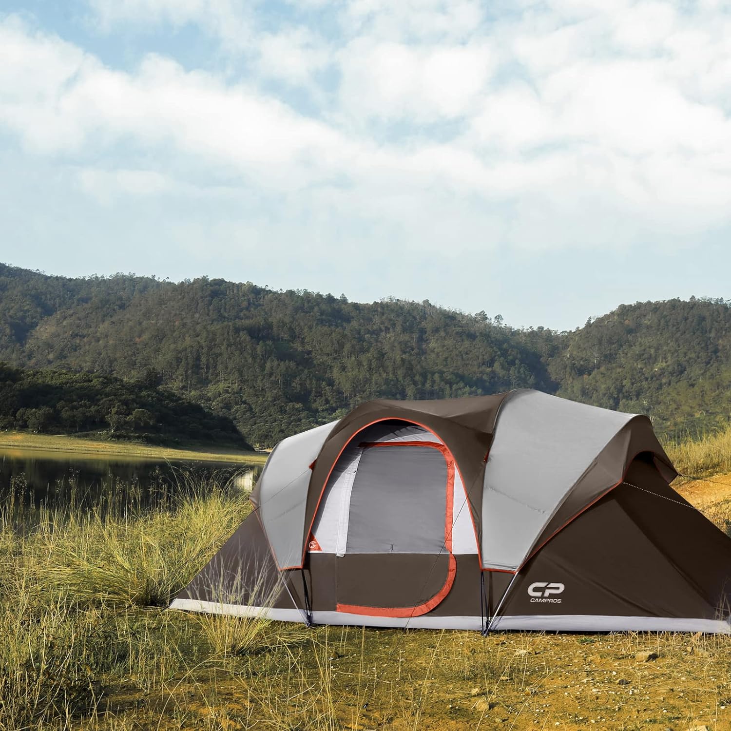 CAMPROS CP - Tienda de campaña para 9 personas, impermeable, resistente al viento, con tapa de lluvia, 4 ventanas de malla grandes, divisor de habitación, fácil de instalar, portátil con bolsa de transporte, color azul