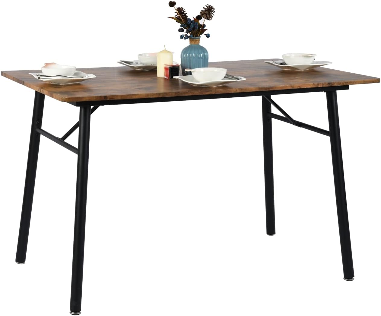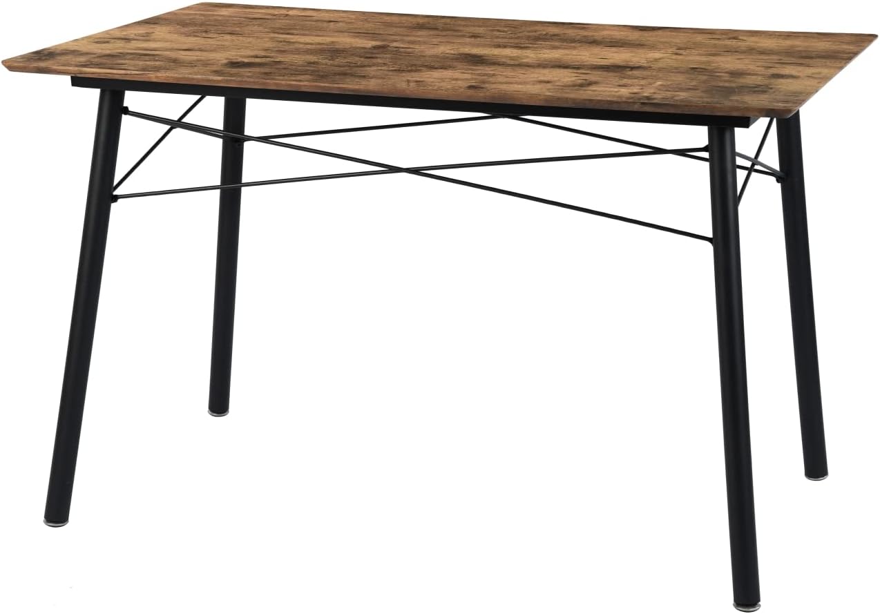 - 『¿Características? Único』- Deja atrás esas mesas que simplemente "se toman y se ponen allí". Esta mesa de comedor, con exclusivas patas de metal negro mate y una tapa marrón rústica, aporta un toque de encanto industrial y novedad a su comedor.