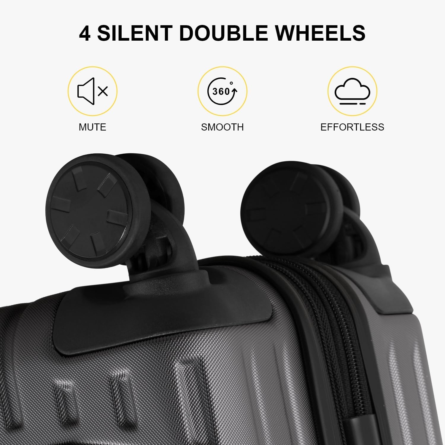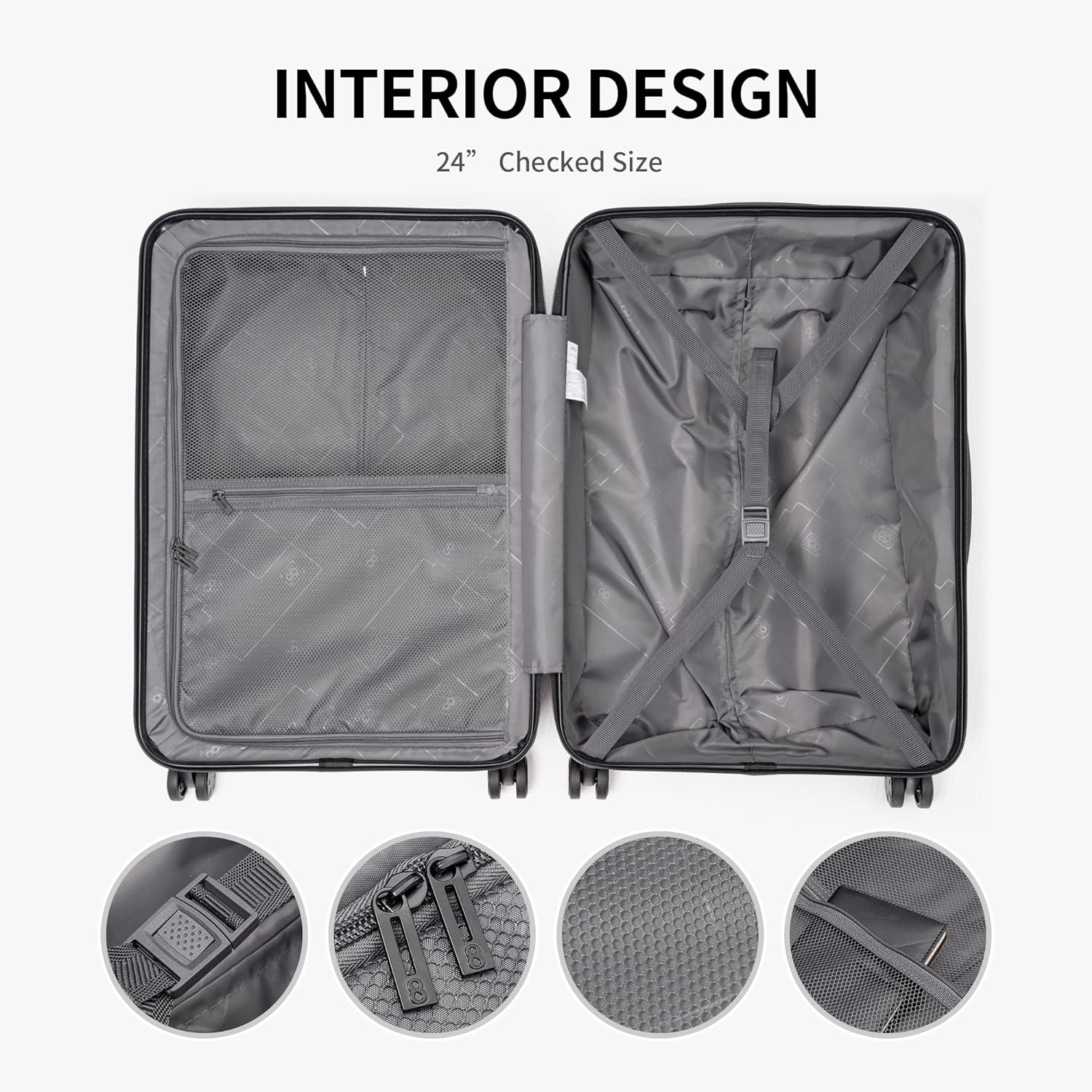 Cerradura TSA integradaCierre de cremallera con combinación TSA para mantener tus pertenencias seguras mientras viajas. | Interior espaciosoDiseño de caja dividida junto con un divisor de cremallera y un compartimento de embalaje forrado para mantener todo perfectamente organizado. | Ruedas giratorias suaves y silenciosas8 ruedas multidireccionales de goma de 360 grados para un manejo sin esfuerzo. | Mango telescópico retráctilMango ajustable de aluminio resistente que se bloquea firmemente en su lugar cuando está extendido. |