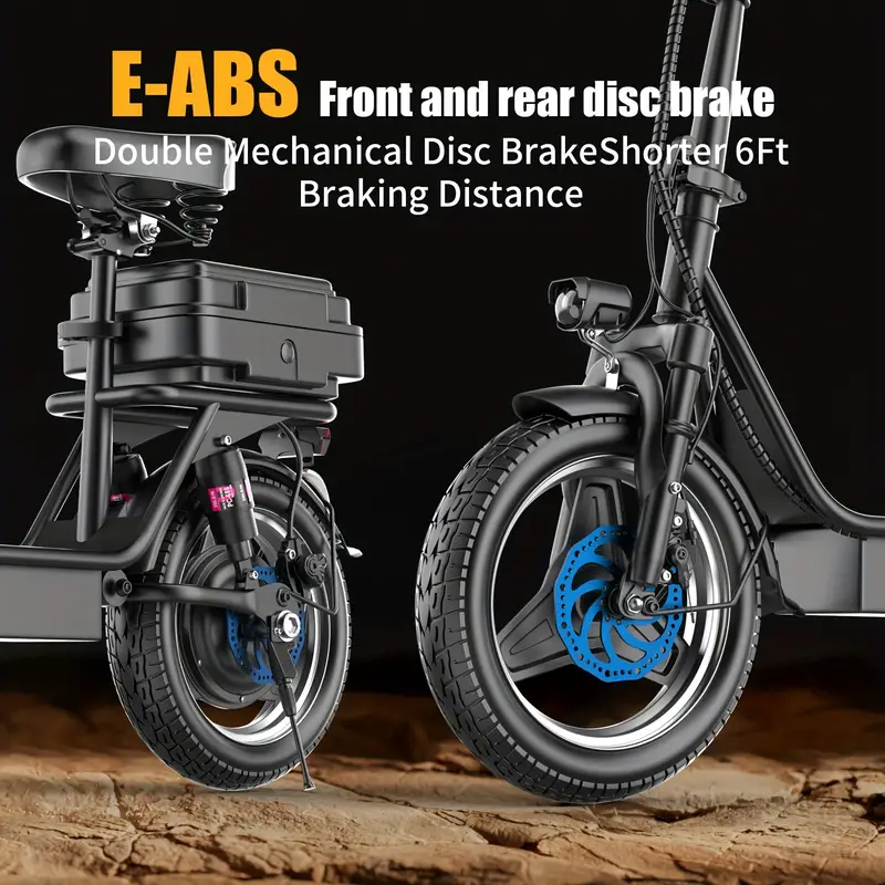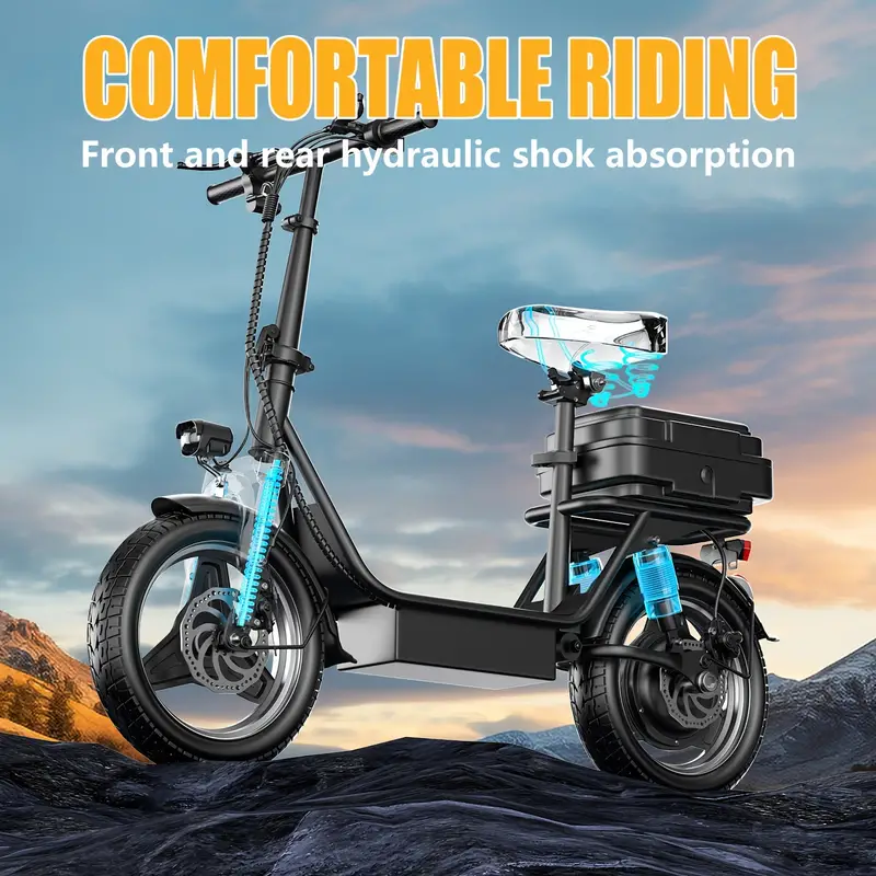 Patinete eléctrico para adultos, patinete eléctrico con asiento, motor de 500 W pico 650 W, hasta 20 MPH y 30 millas de autonomía, batería de 36 V 13 AH, neumático de 14 pulgadas, con caja trasera
