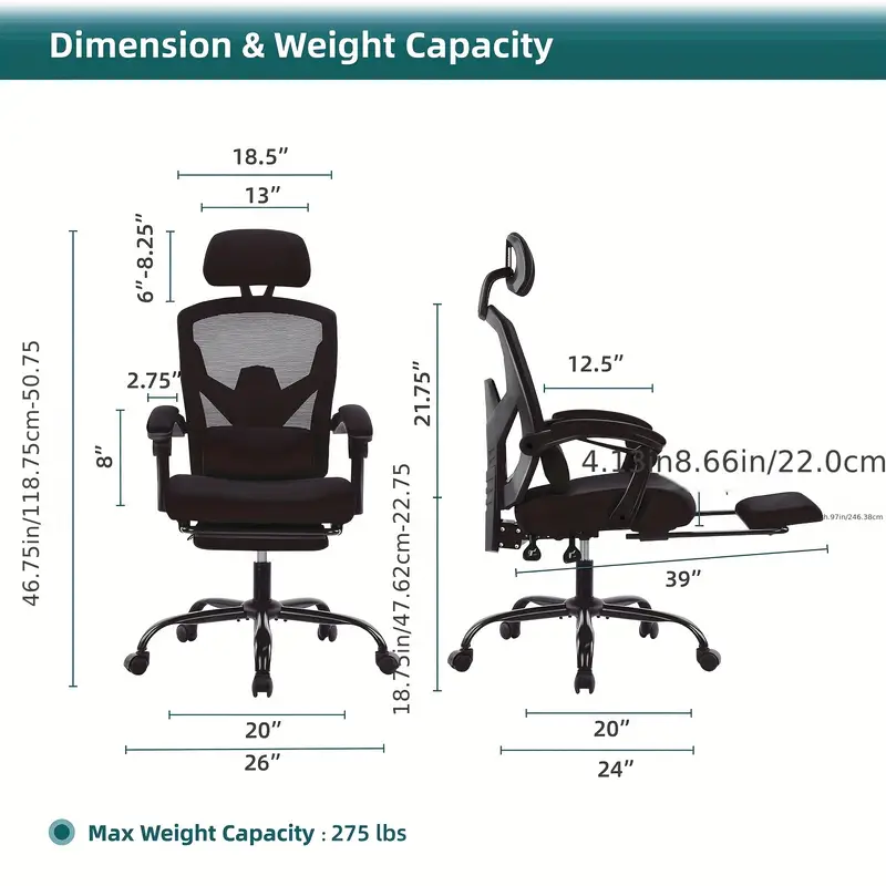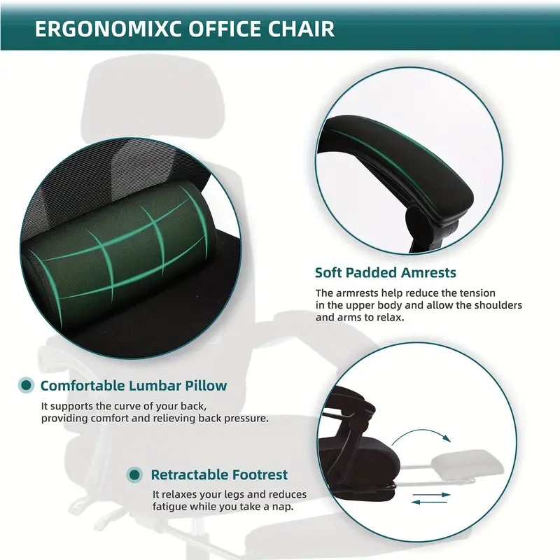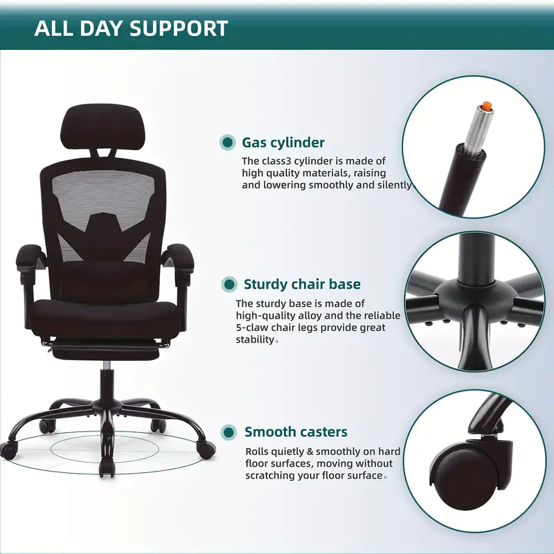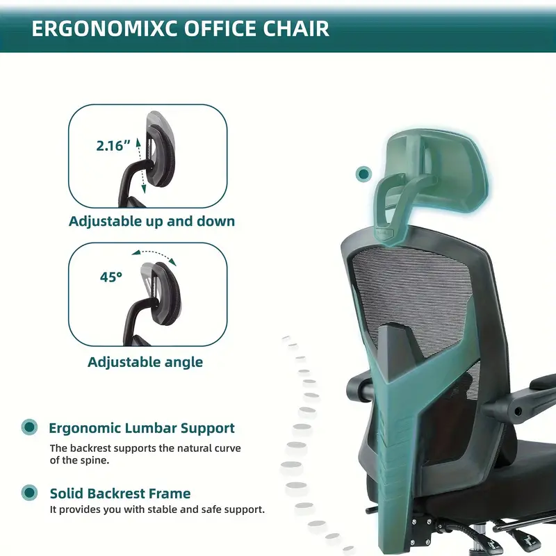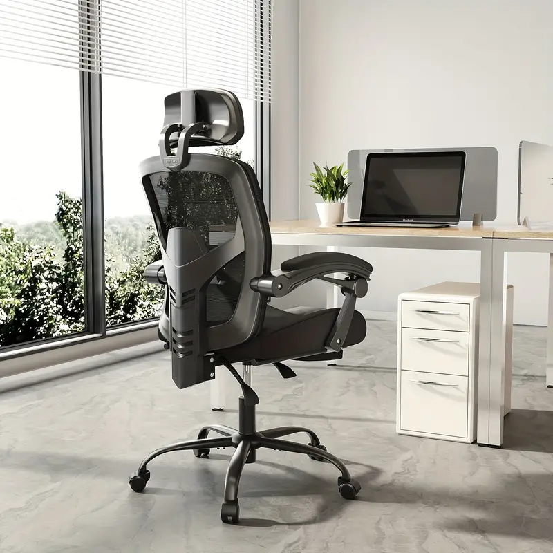 Silla de escritorio para computadora, silla ergonómica giratoria de trabajo con respaldo alto de malla, ruedas, brazos cómodos para el hogar, dormitorio, estudio, cómodo soporte lumbar.