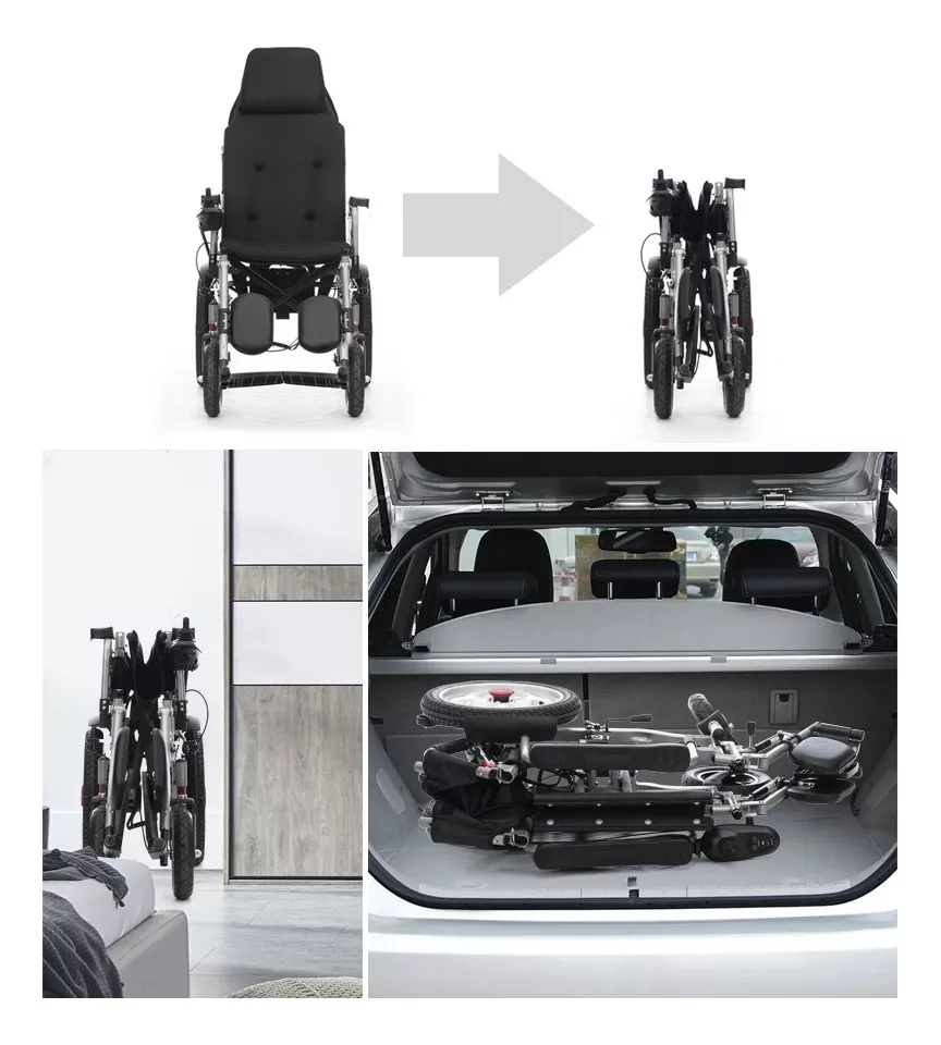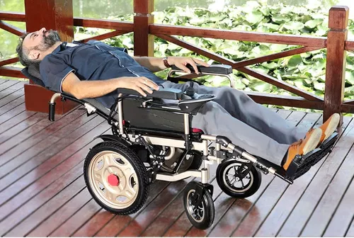 Nueva silla de ruedas eléctrica , se pliega y despliega c en el 360 joystick. Es resistente, más fuerte y de mayor alcance cuando está plegado, puede caber en el baúl de un automóvil compacto. Tanto el reposabrazos se levanta como el reposapiés se pliega al ras para facilitar la entrada y salida. Frenos dobles, absorción de impactos inteligente ,La pendiente de la subida es de 13 grados.Esta silla de ruedas eléctrica línea con una capacidad de peso de 150 kg y solo pesa 47kg Material de acero al carbono