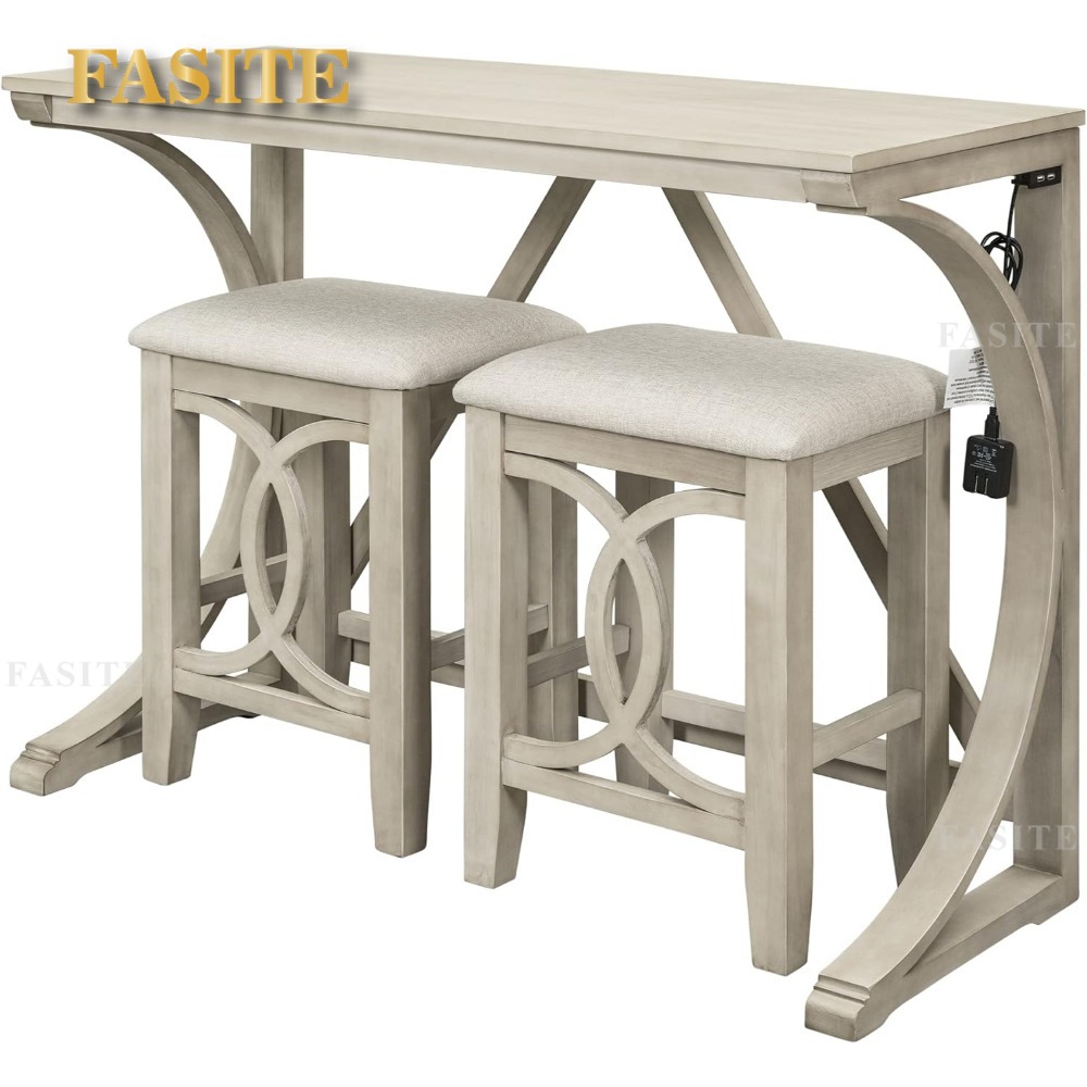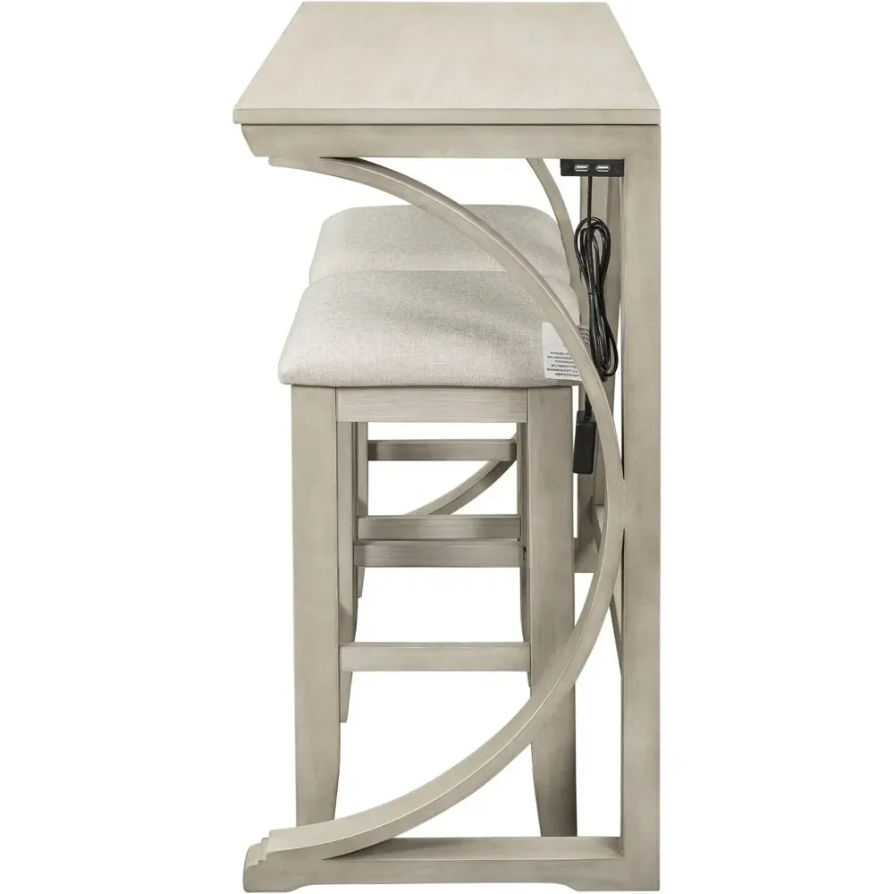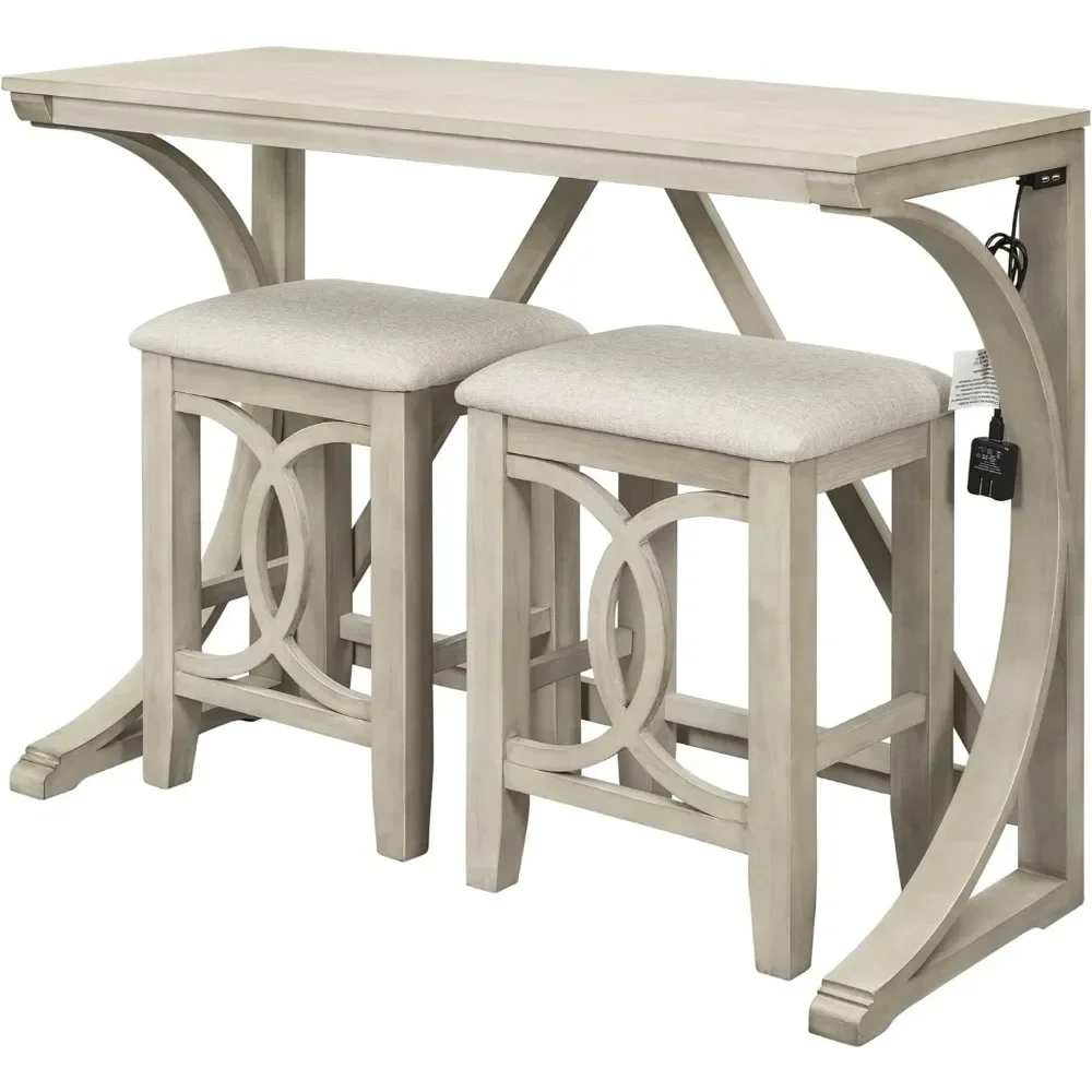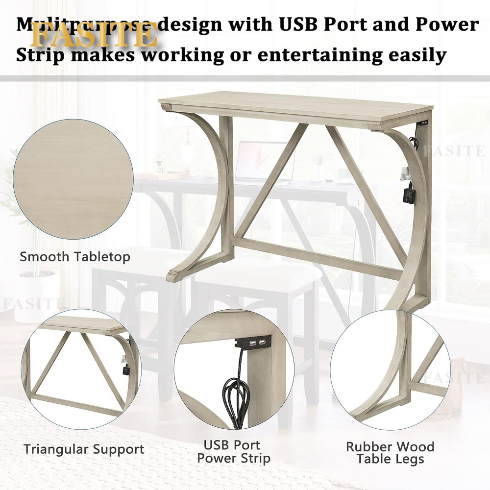 【Juego de bar con USB incorporado】: El diseño creativo USB incorporado hace posible cargar su teléfono o configurar sus dispositivos electrónicos favoritos. Gracias a los puertos USB, este juego de altura de mostrador permite mantener sus dispositivos cargados mientras trabaja o juega.
