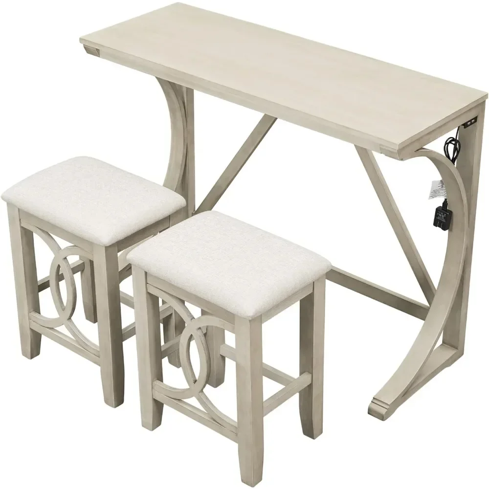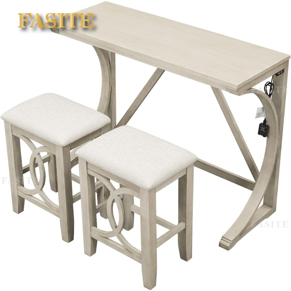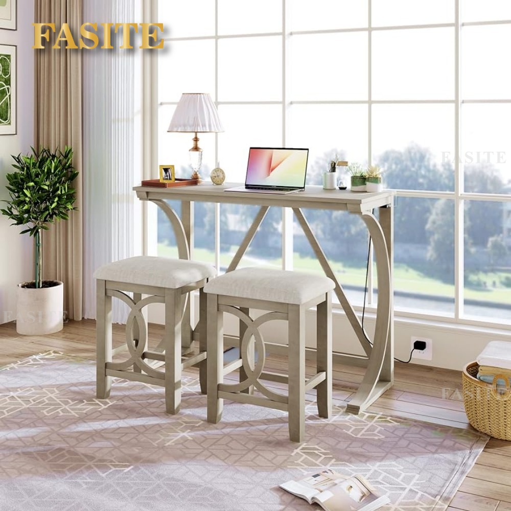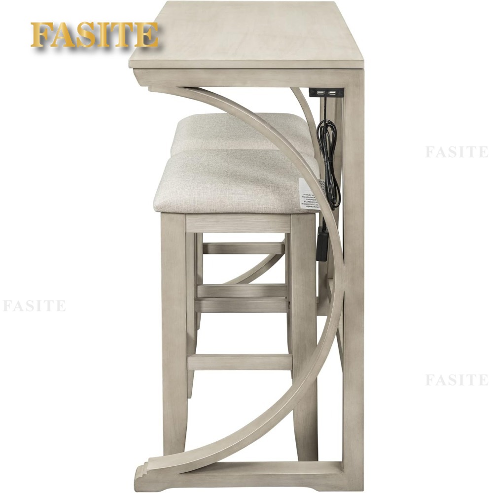 【Juego de bar con USB incorporado】: El diseño creativo USB incorporado hace posible cargar su teléfono o configurar sus dispositivos electrónicos favoritos. Gracias a los puertos USB, este juego de altura de mostrador permite mantener sus dispositivos cargados mientras trabaja o juega.