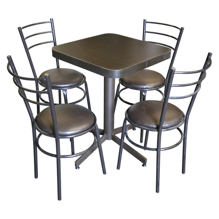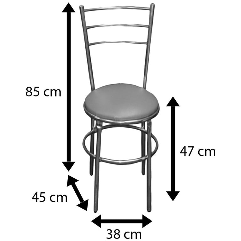 Mesa: Pedestal tubular de 3 pulgadas con pata tipo gallo, niveladores para superficies irregulares. Cubierta de formaica. Silla: Perfil tubular cilíndrico calibre 18 de 1 pulgada, soldadura reforzada, asientos acojinados, densidad 27 Kg y tapizado en tacto piel sintético. Medidas Mesa Alto: 72 cm, Ancho: 60 x 60 cm. Silla Alto al asiento: 47 cm Ancho: 38 cm diámetro Alto: 85 cm. Ventajas: Armazón ideal para uso rudo que brinda mayor durabilidad y resistencia, cubierta de fácil limpieza.
