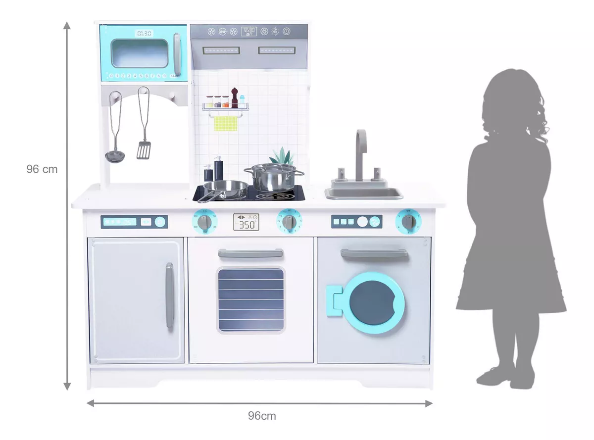 Esta cocinita está fabricada en madera de alta calidad, lo que la hace resistente y duradera. Su color blanco le da un toque moderno y elegante, que combinará perfectamente con la decoración de cualquier habitación.