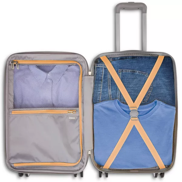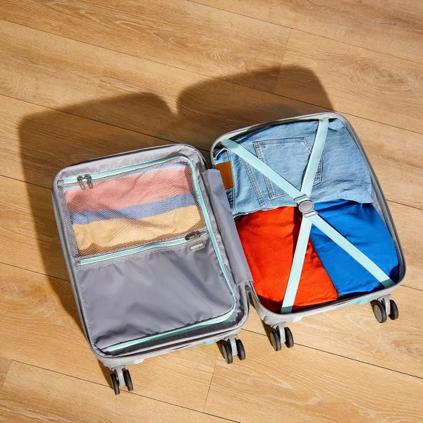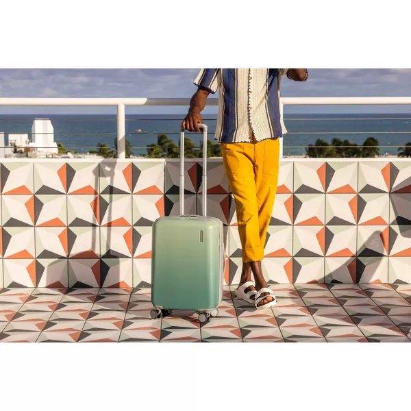 Modern Printed Hardside Carry-On Spinner is perfect for a 1-3 day trip, with everything you need to make your quick getaway stress free and fun! RightHeight™ handle system with multi-stop adjustments allow you to extend the handle to a height that is customized to roll you confidently with our wear and tear tested dual spinner wheel. It delivers maximum stability and comfort. Smooth operator for hands of all kinds, our large zipper pulls are effortless to use.w99