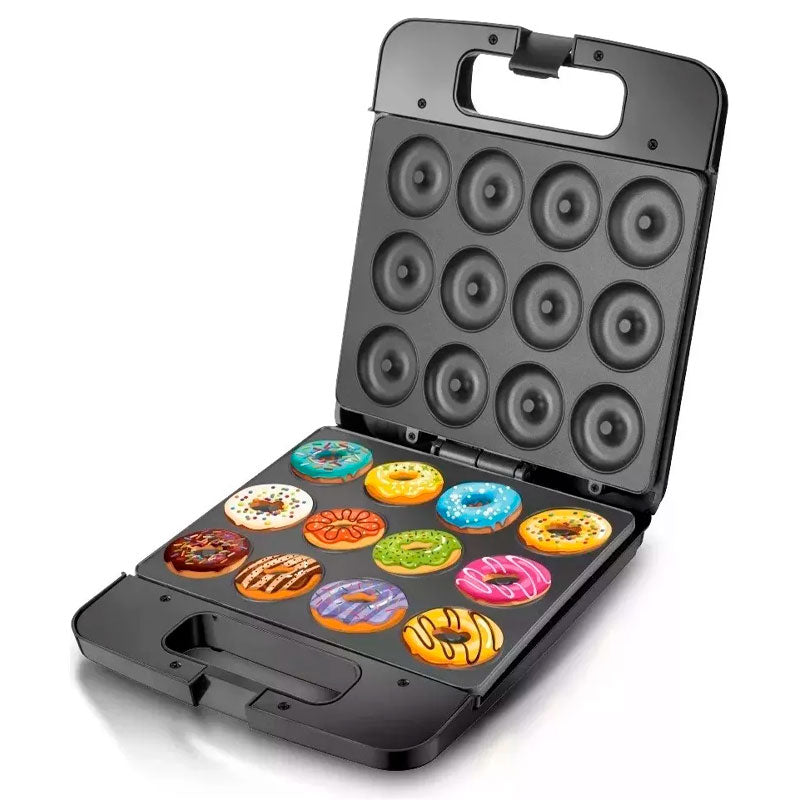 Práctica máquina para preparar mini donuts de manera fácil, rápida y mucho más sana, es ideal para mezclas dulces o saladas. De diseño compacto y elegante, su recipiente es especial para la masa con rápida limpieza gracias a su antiadherencia. Maquina para 12 donuts de Quedaran encantados en casa con estas deliciosas donas. Práctica máquina para preparar mini donuts.