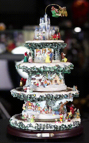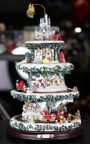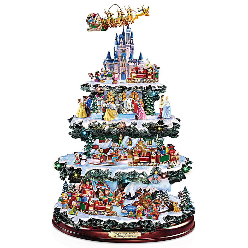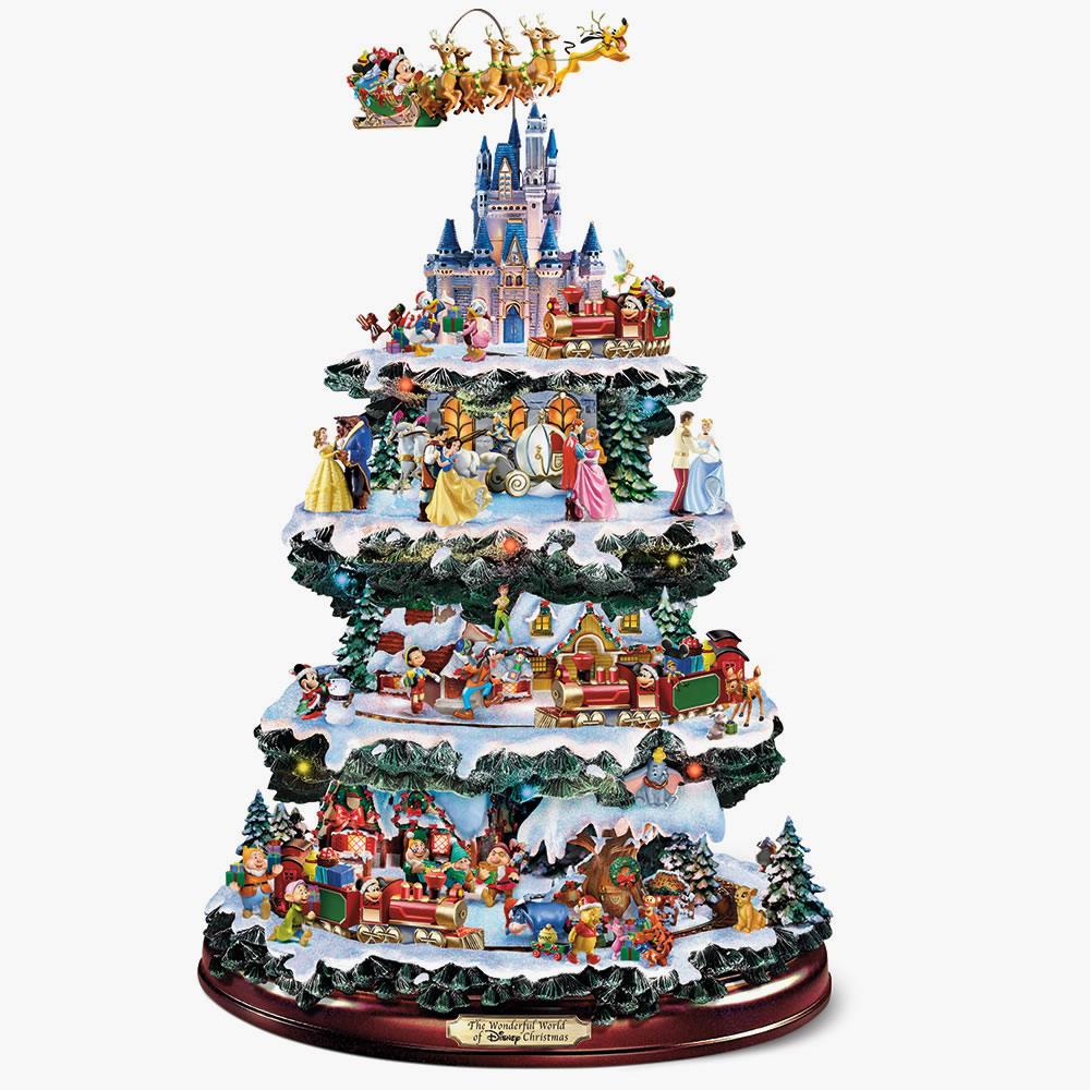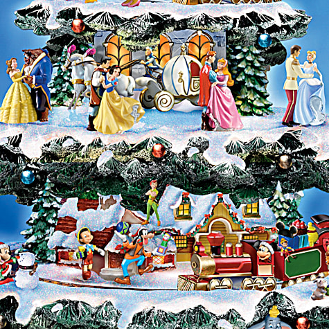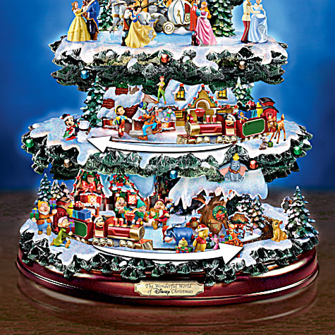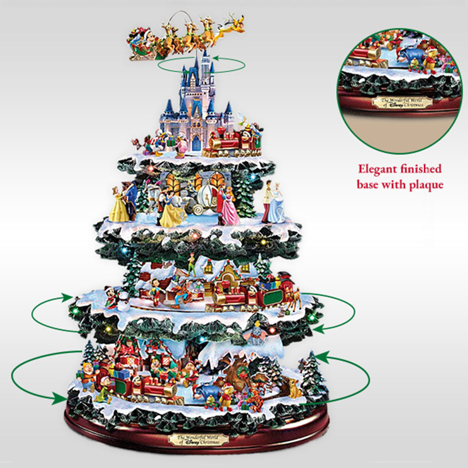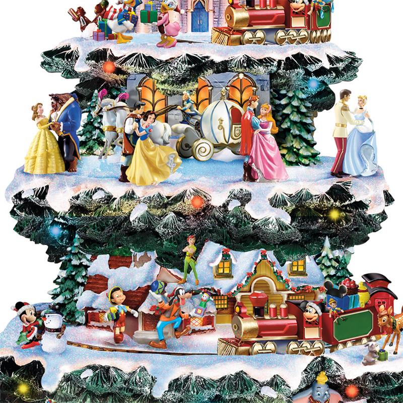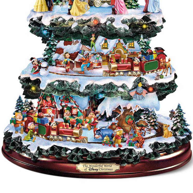 La impresionante decoración giratoria de la mesa del árbol de Navidad captura 10 escenas festivas únicas protagonizadas por más de 75 personajes tallados y pintados a mano de tus películas favoritas y más.