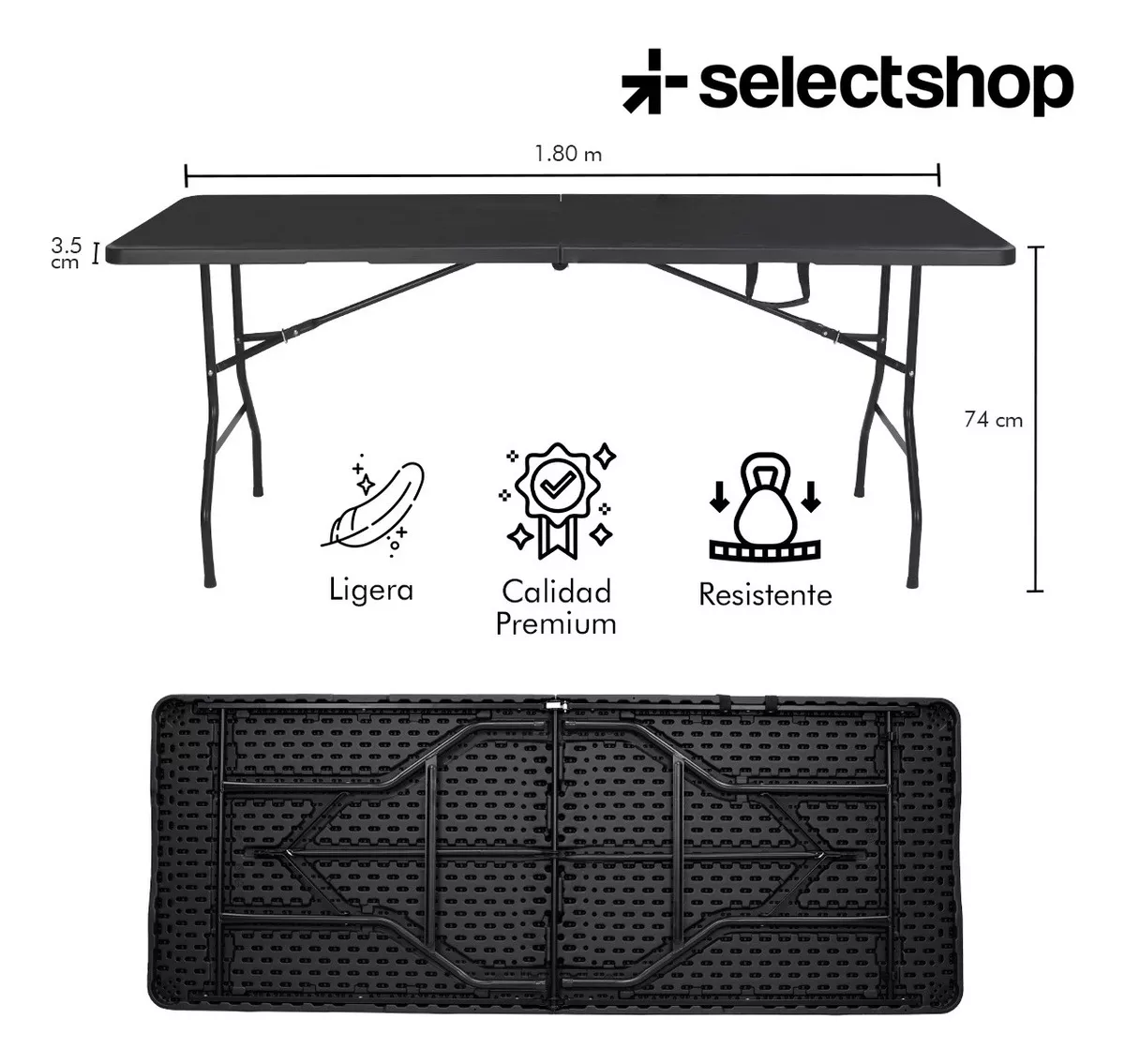 Tamaño Adecuado: Con una longitud de 180 cm, esta mesa ofrece un amplio espacio para colocar alimentos, bebidas, juegos u otros objetos durante tus reuniones. Es lo suficientemente grande para acomodar a varias personas cómodamente.