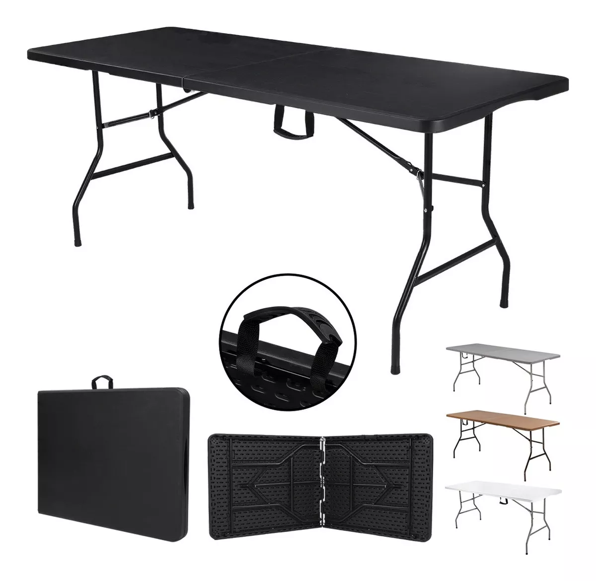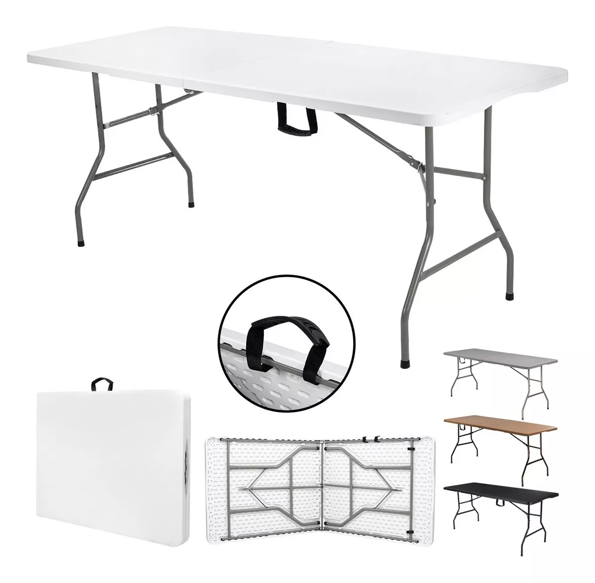 Prepara tus espacios al aire libre y eventos con la Mesa Plegable Portátil de Plástico de 180 cm en color blanco, diseñada con un estilo tipo portafolio que la hace fácil de transportar y configurar en cualquier lugar. Esta mesa es ideal para actividades al aire libre, reuniones familiares, eventos sociales y más.