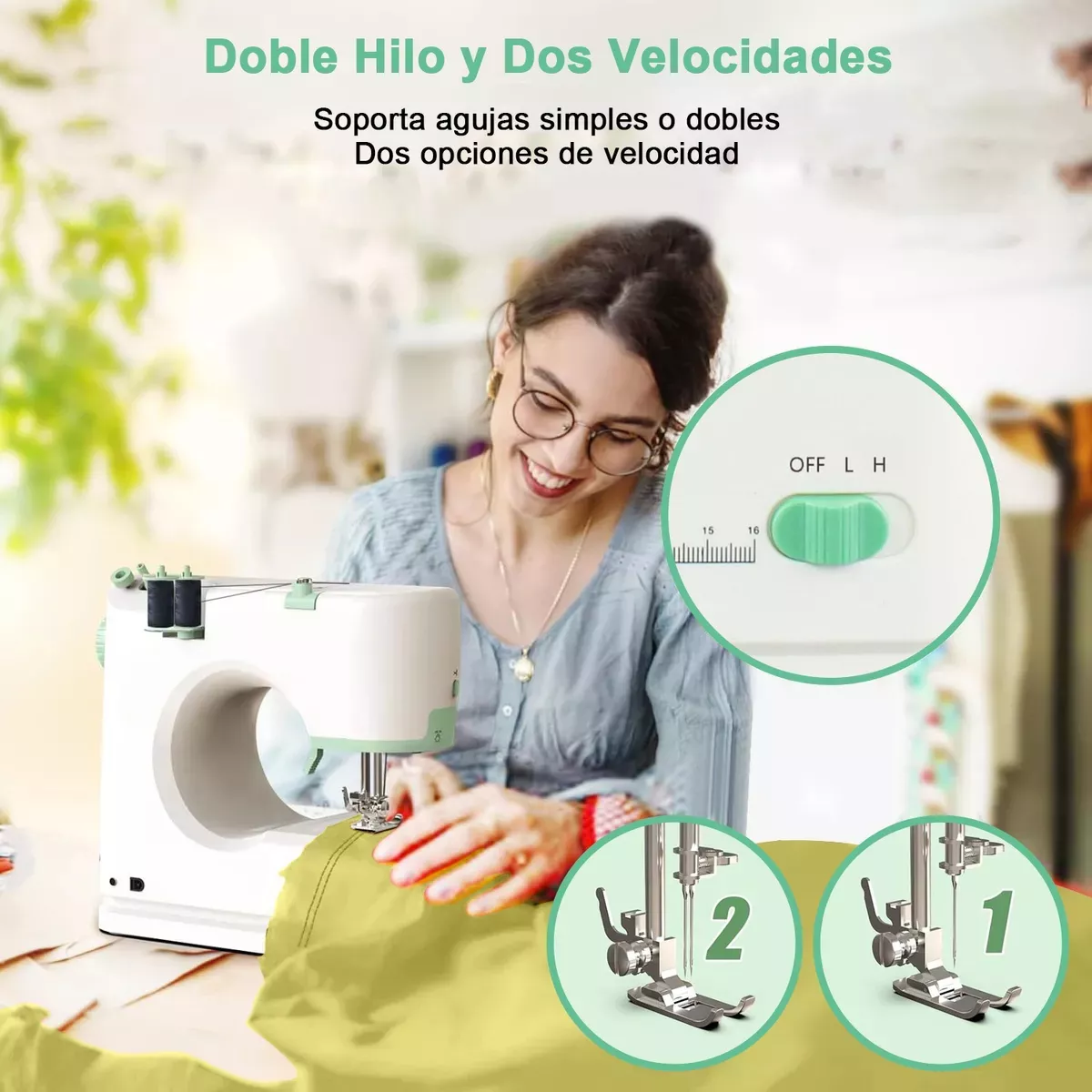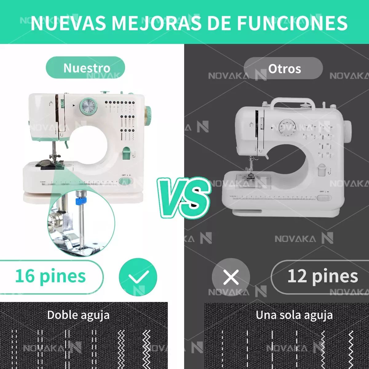 La nueva y mejorada mini máquinas de coser eléctrica kit ha aumentado su funcionalidad de 12 a 16 puntadas y ha sido mejorada con un diseño de dos agujas de coser. Con la capacidad de coser dos puntadas al mismo tiempo, esta máquina de coser ofrece un aumento significativo de la eficiencia y la funcionalidad con respecto a las máquinas de coser tradicionales de una sola aguja.