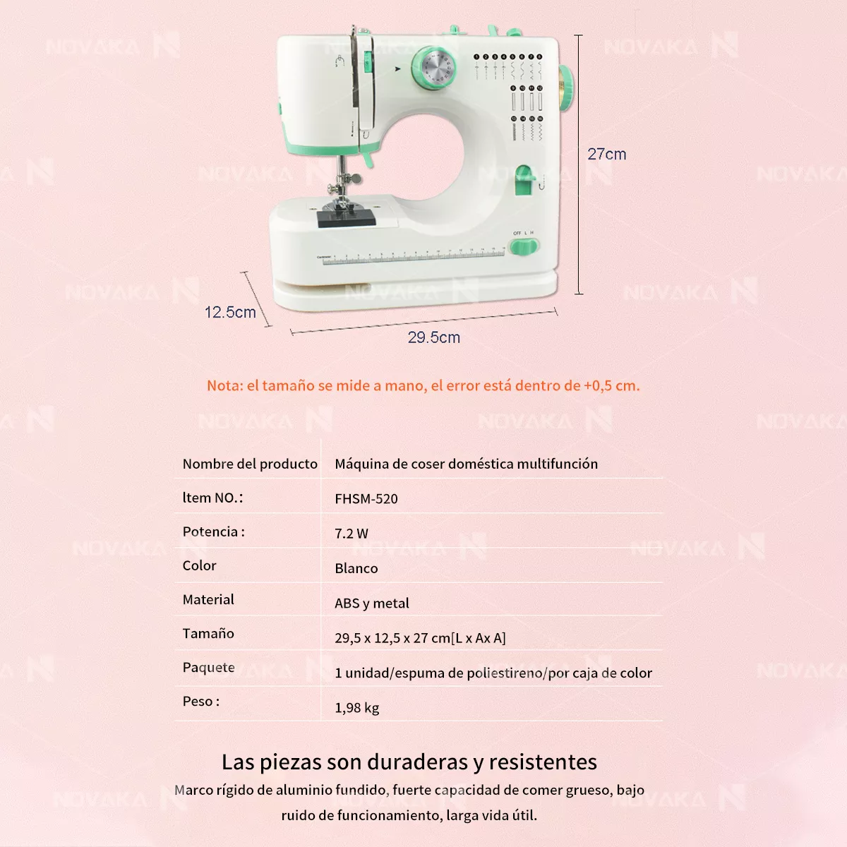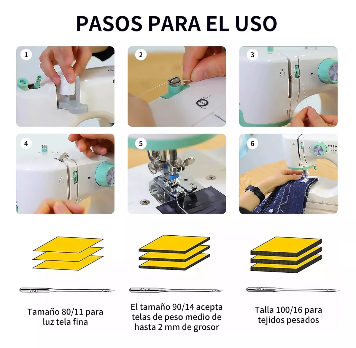 - Máx grosor de costura: 3mm, puede coser 8 capas de mezclilla fina.