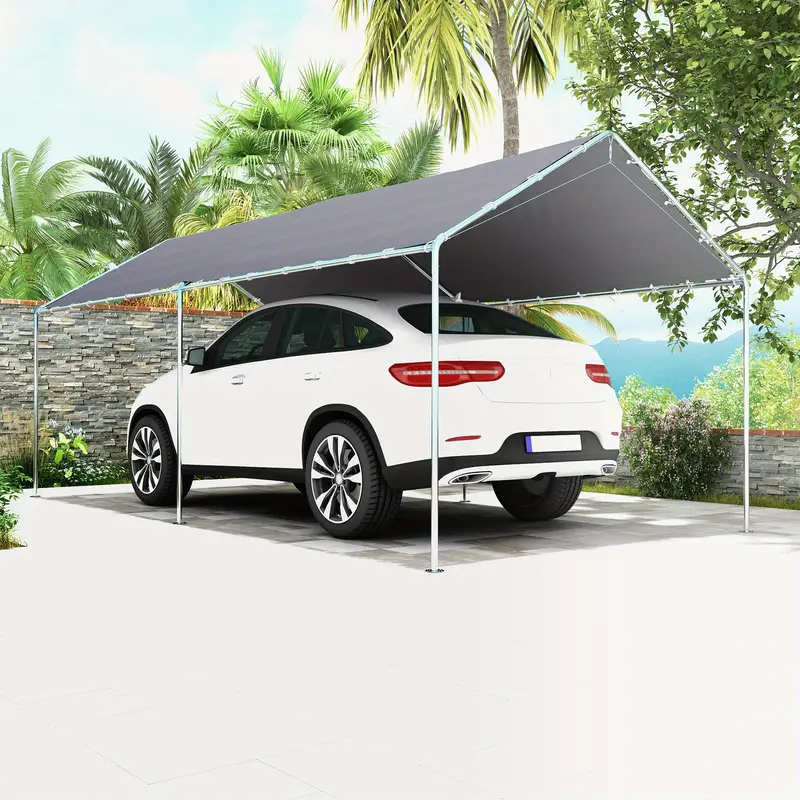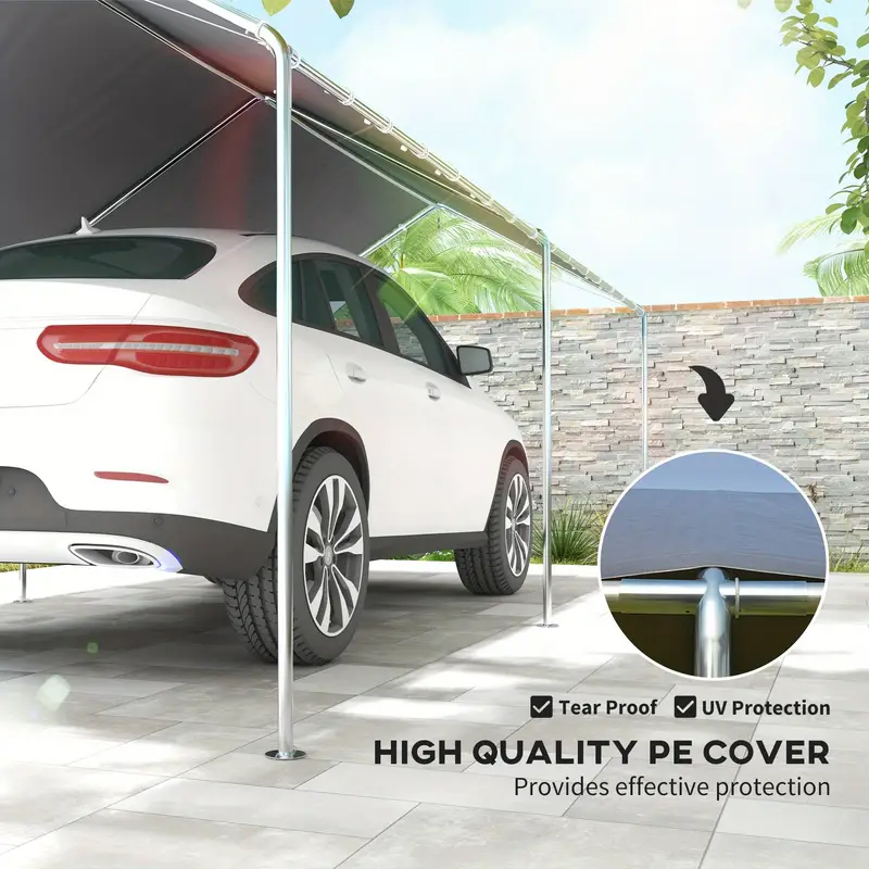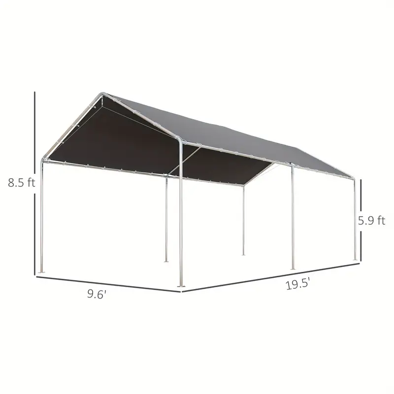 Outsunny 10'x20' Carport, toldo para coche de alta resistencia galvanizado con kit de anclaje incluido, 3 cables de acero reforzados, gris