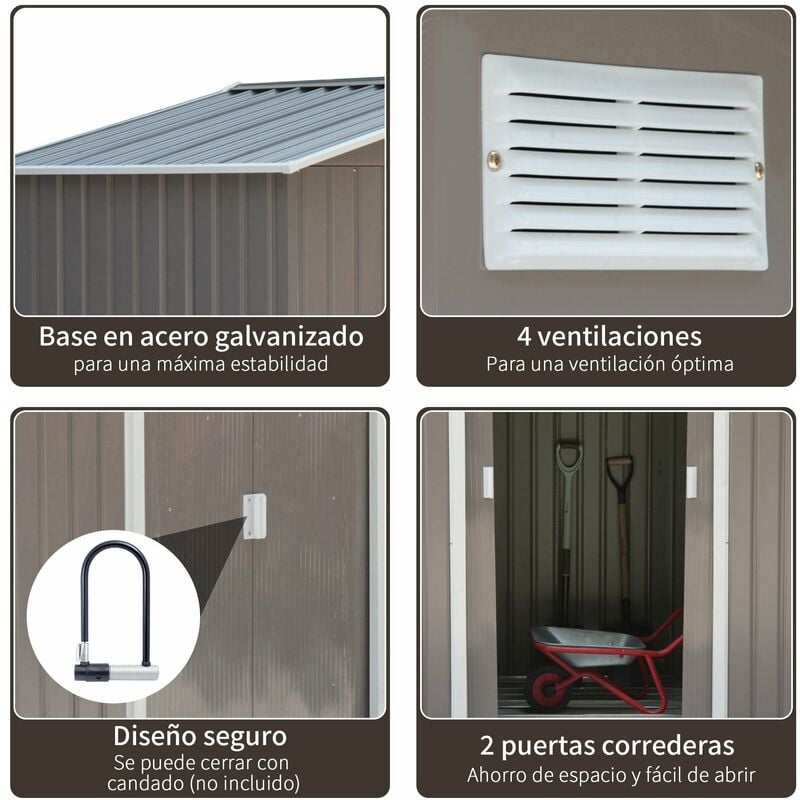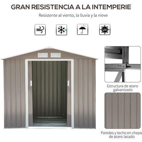 Añade espacio de almacenaje con este cobertizo de Outsunny. Esta caseta de metal es una solución ideal para tener en tu jardín o terraza, para almacenar herramientas, utensilios de jardinería y más. Una caseta de metal tiene distintas ventajas en comparación con las de madera, no se pudre con la humedad ni el paso del tiempo, es ignífuga y no requiere apenas mantenimiento. Gracias a su estructura galvanizada de acero, los respiraderos y la base sólida, tendrás cobertizo garantizado por años.