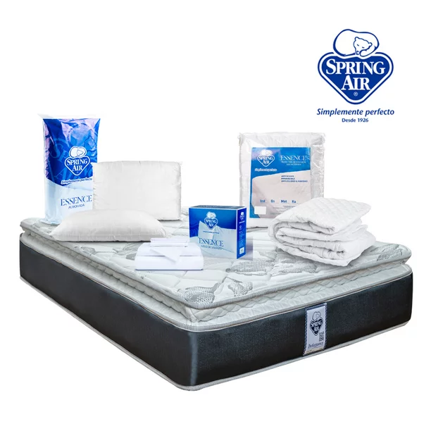 Paquete Colchón King Size + Almohadas Peach Feel + Protector de Colchón King Size + Sabanas King Blanco Spring Air Smith Sp