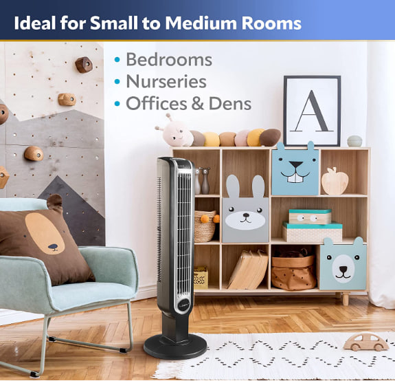 - Wireless Remote Control: Make this fan well suited for the bedroom or home office. The remote allows you to control oscillation, fan speed, the built-in timer or turn the fan or night light on or off.