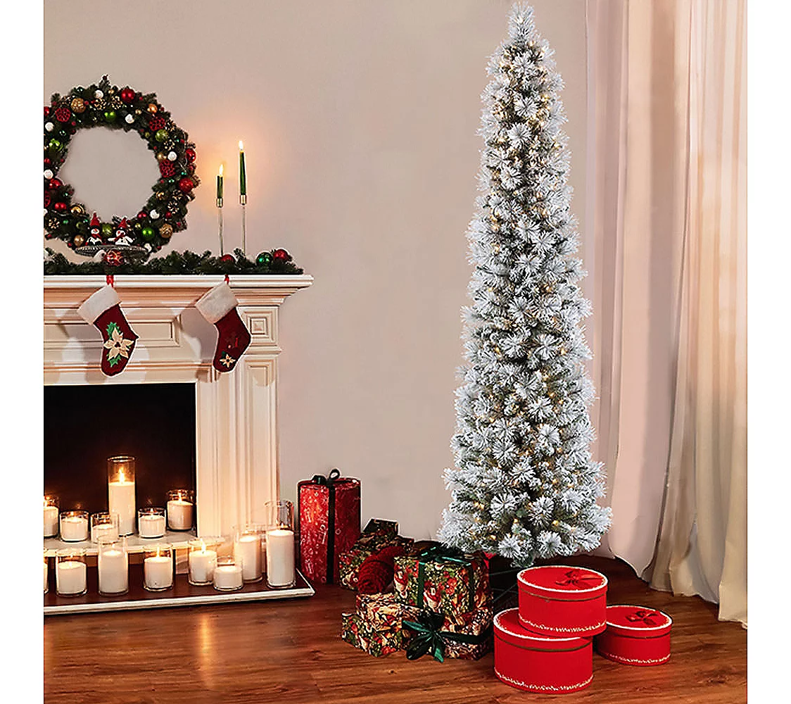 Inspired by lush wintry forests, this pre-lit Portland pine tree brightens your holiday home with 350 clear incandescent lights. From Puleo.