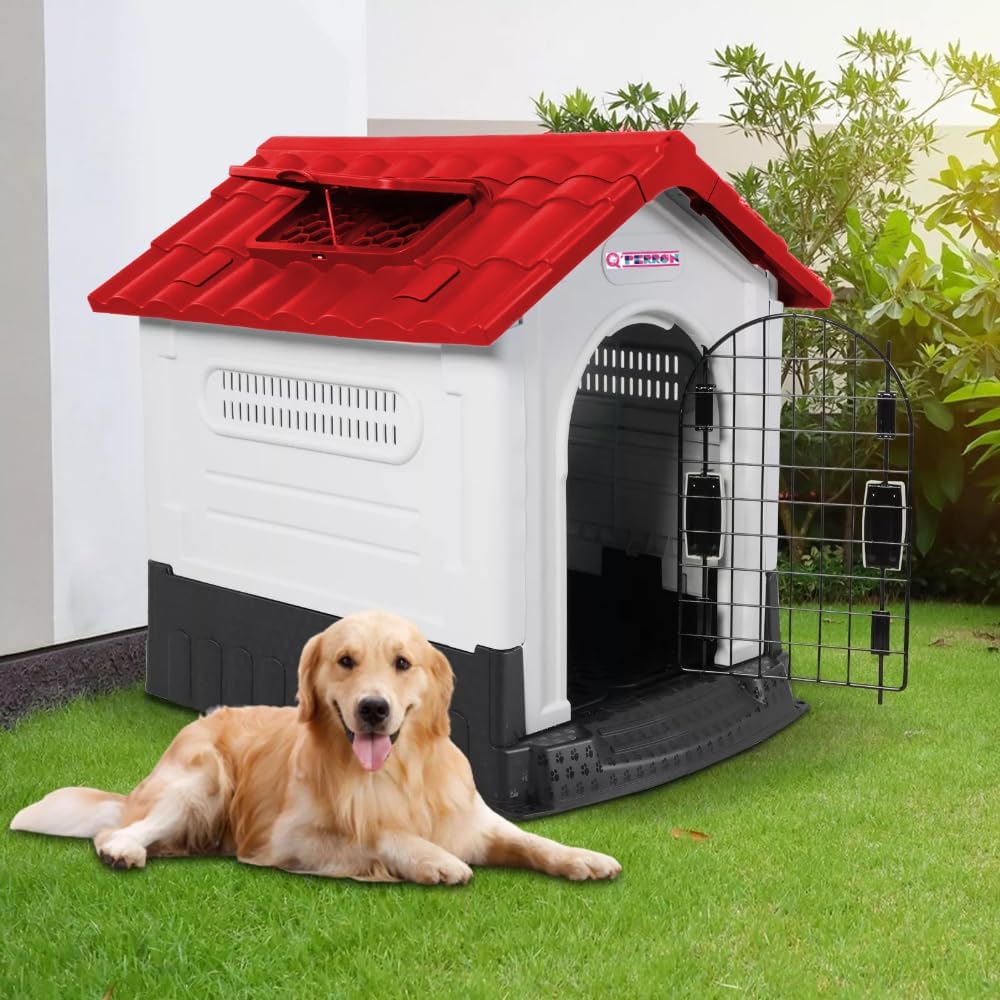 - Techo impermeable, el techo inclinado es impermeable y resistente a la lluvia, para evitar que su perro se moje.