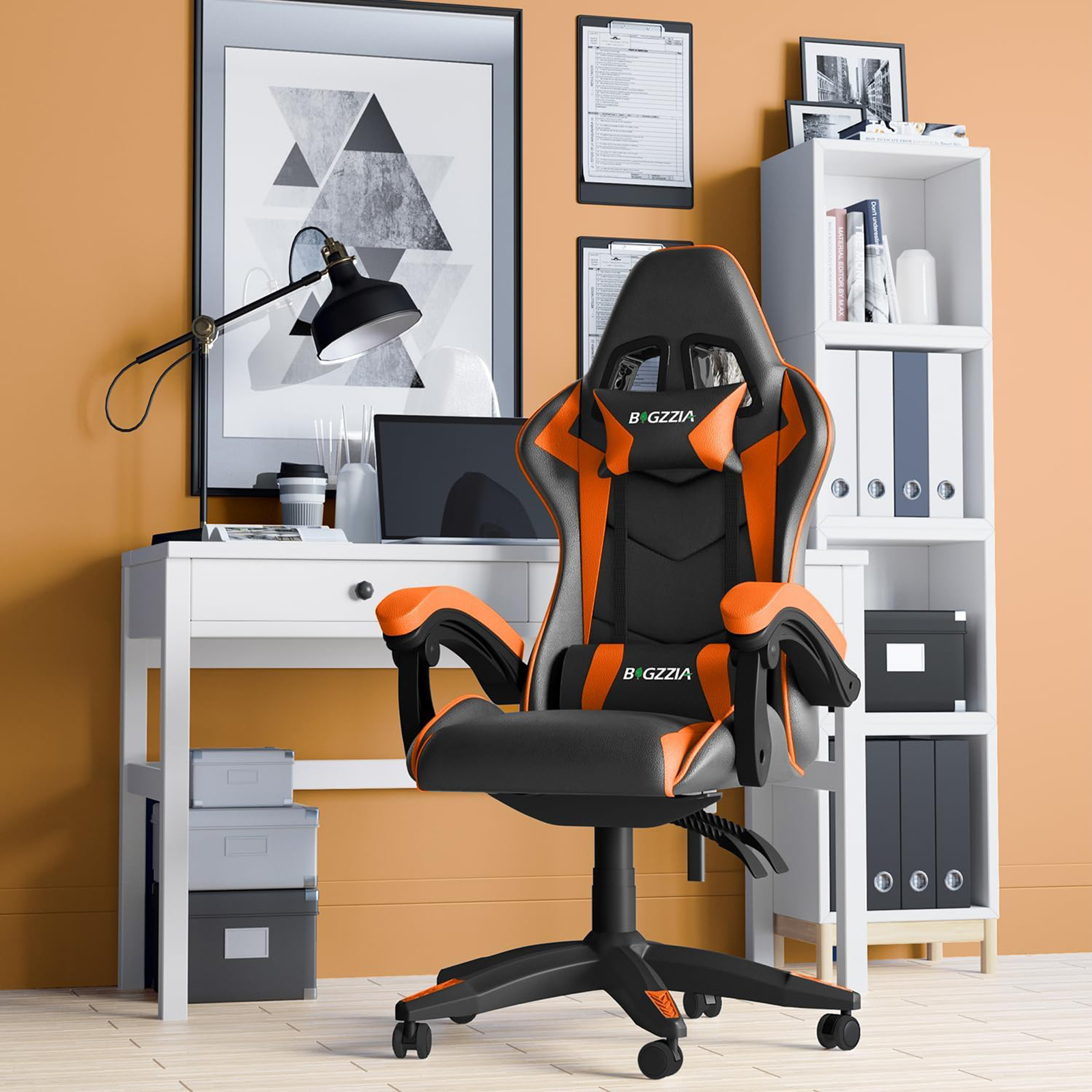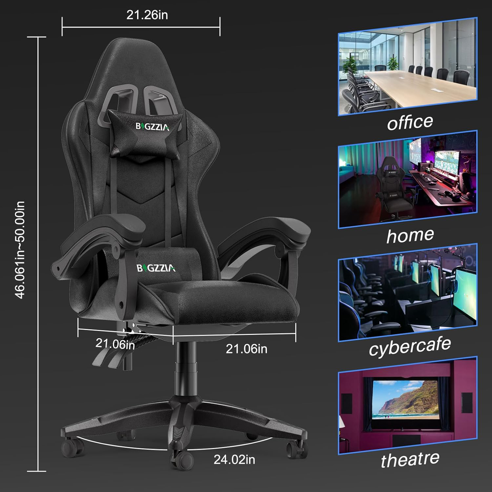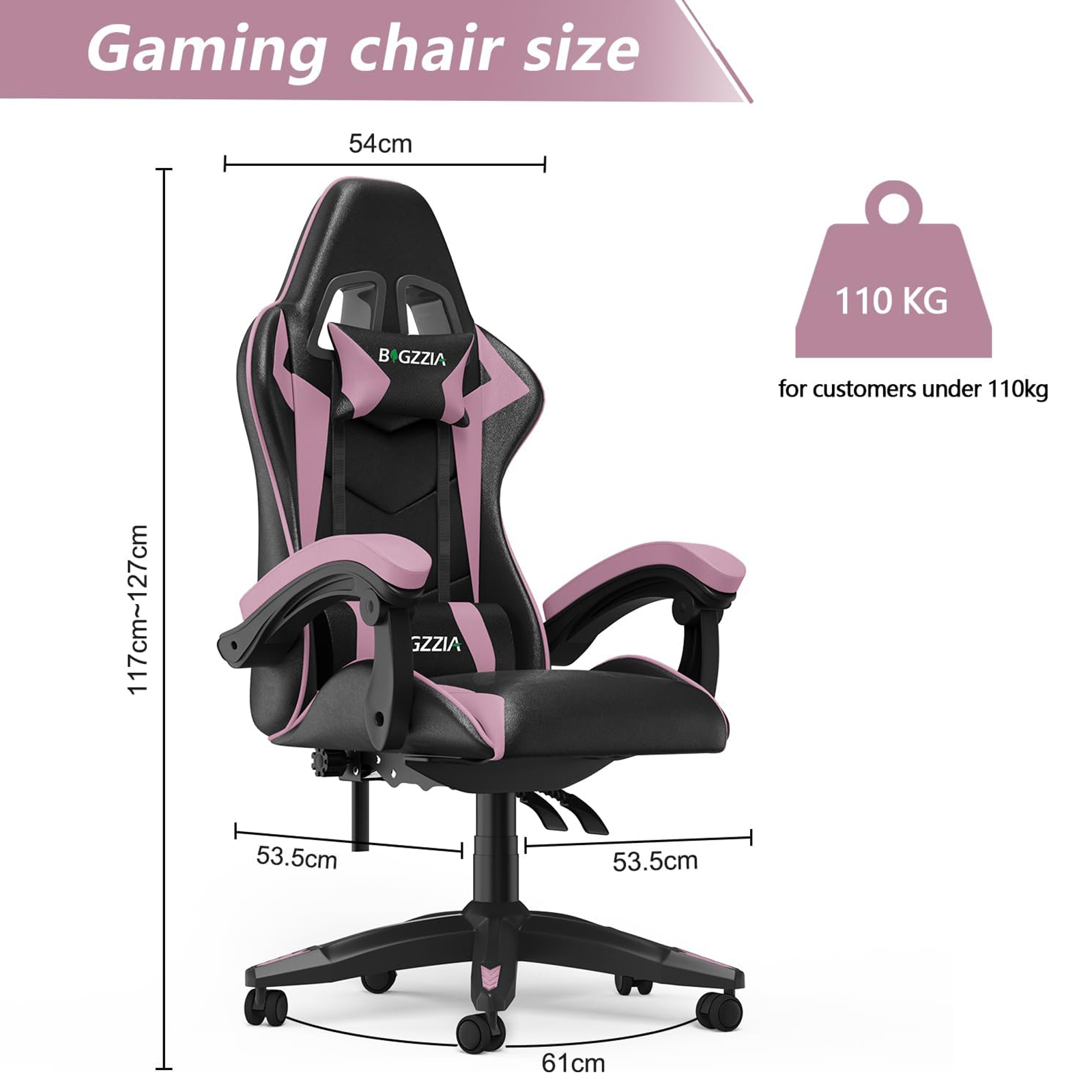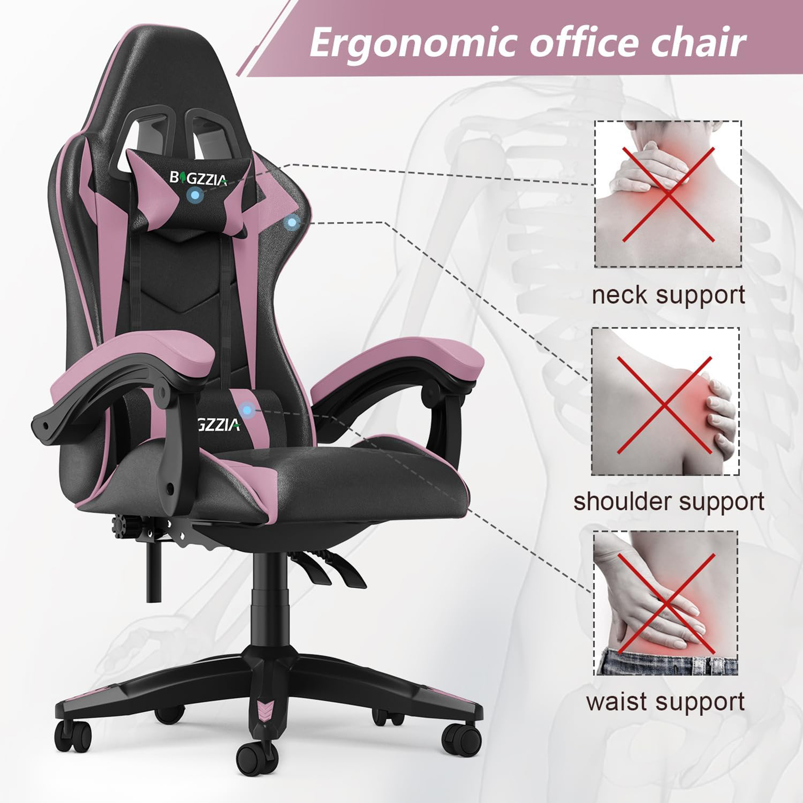 Diseño ergonómico para gamers: la silla para gamers cuenta con una función reclinable única de gran ángulo que se puede ajustar para satisfacer tus necesidades, lo que te permite estar cómodo en todo momento. Viene con un reposacabezas ajustable y extraíble y soporte lumbar, que proporciona un soporte personalizado que se adapta a la curva de tu columna lumbar y alivia el dolor de espalda por estar sentado durante mucho tiempo.
