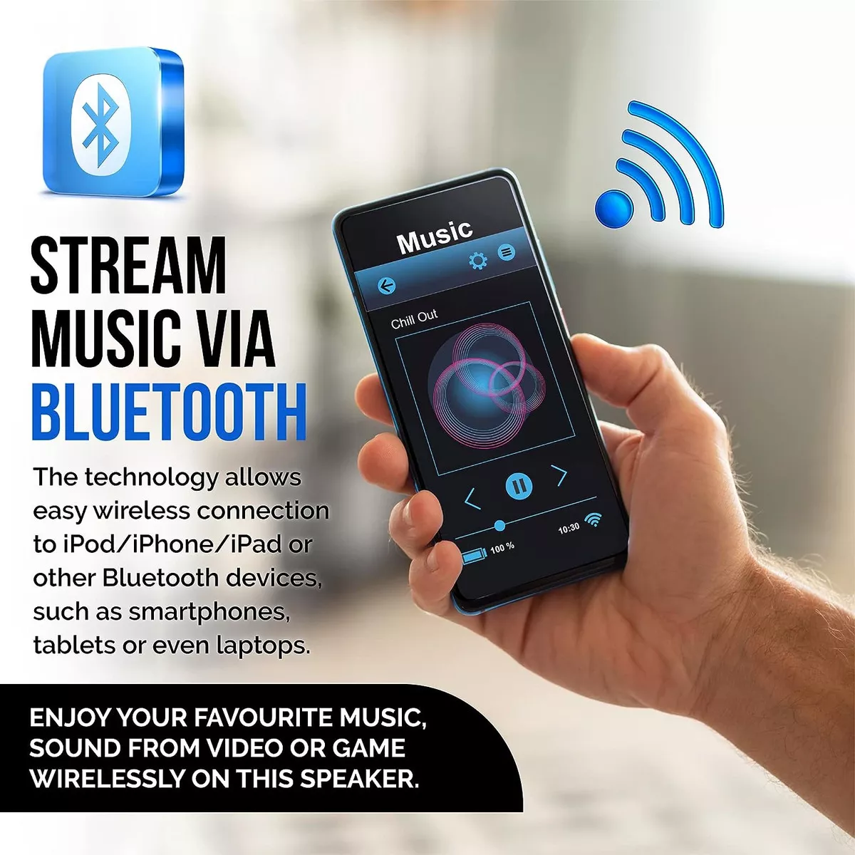 BLUETOOTH INALÁMBRICO: Empareje su teléfono/tableta u otros dispositivos Bluetooth con este reproductor de CD Boombox portátil con Bluetooth para transmitir de forma inalámbrica su música y podcasts favoritos, con conexión estable y alcance inalámbrico extendido disfrute de este reproductor de CD portátil con altavoces en cualquier lugar.
