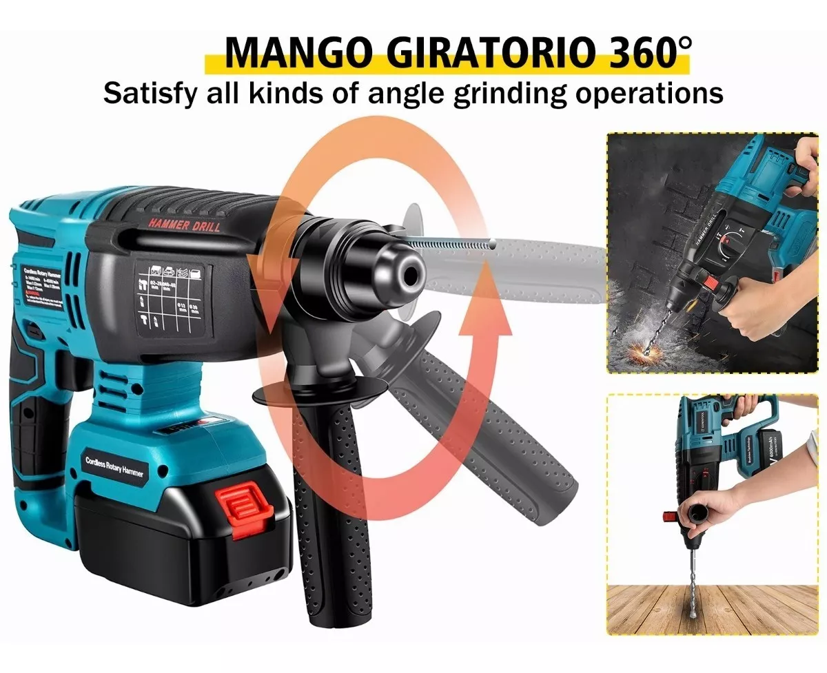 Se pueden realizar una variedad de tareas de perforación. Los amortiguadores incorporados reducen eficazmente la vibración y la fatiga. El diseño de protección del embrague de seguridad garantiza que el martillo pueda soportar un alto torque en la muñeca; Mango ajustable de 360 grados con mango texturizado para un funcionamiento y comodidad óptimos.