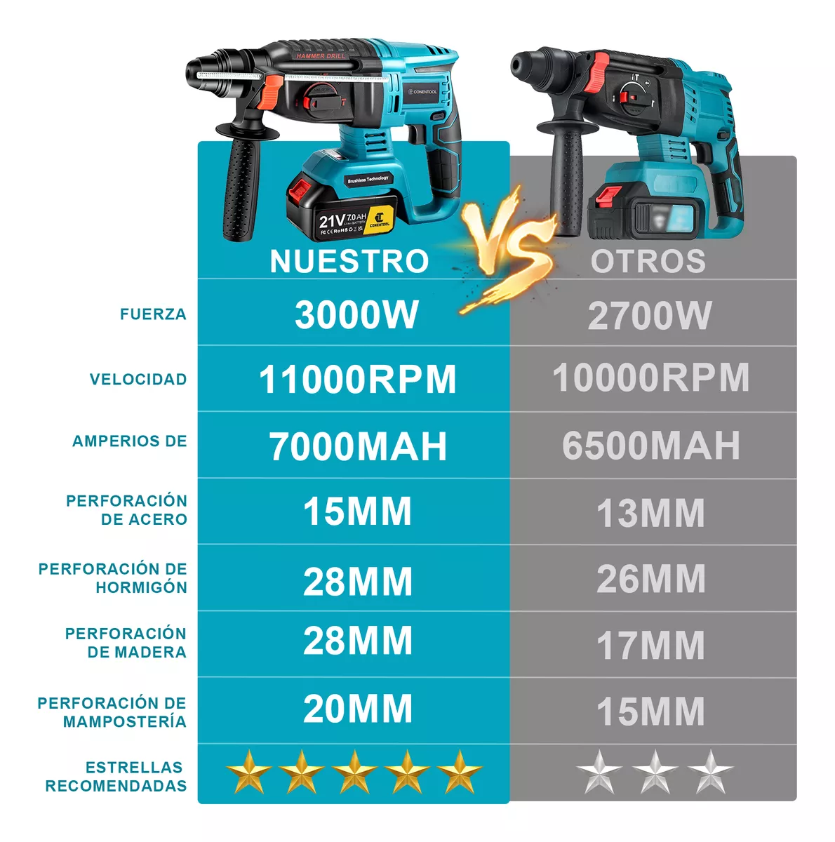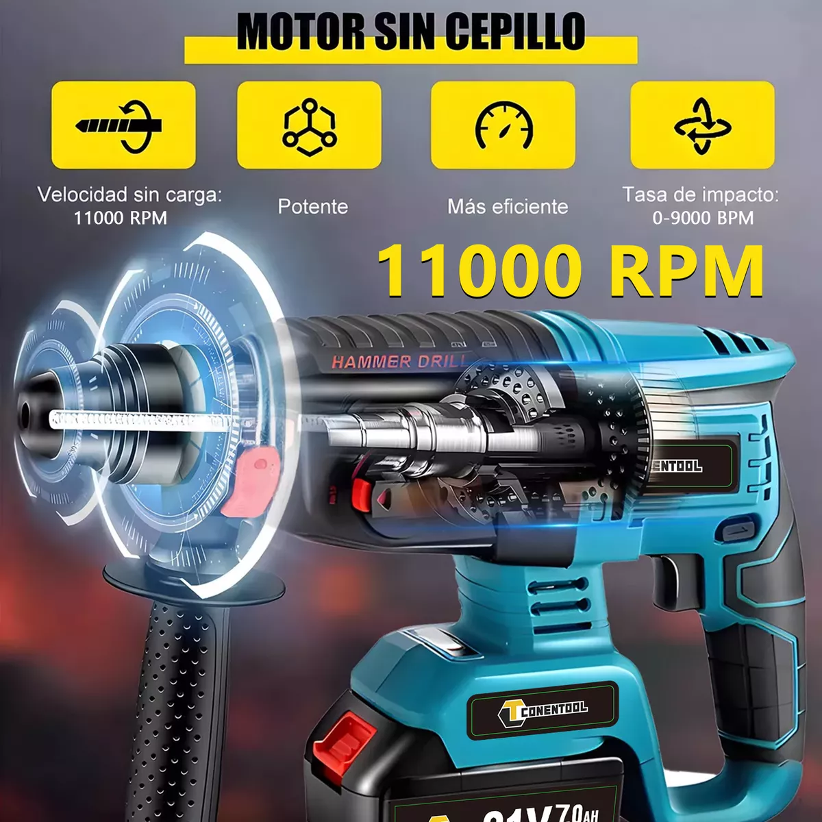 Motor de 3000w, el motor proporciona una poderosa energía de impacto para completar trabajos pesados en concreto, mampostería y metal. El motor de alambre de cobre resistente al calor puede funcionar durante mucho tiempo sin quemarse. Para garantizar un rendimiento sólido y una durabilidad duradera, taladre sin esfuerzo a velocidades de hasta 11000 RPM para una variedad de materiales, y el motor ofrece una poderosa energía de impacto para trabajos pesados en concreto, mampostería y metal. El motor de alambre de cobre resistente al calor puede funcionar durante mucho tiempo sin quemarse.