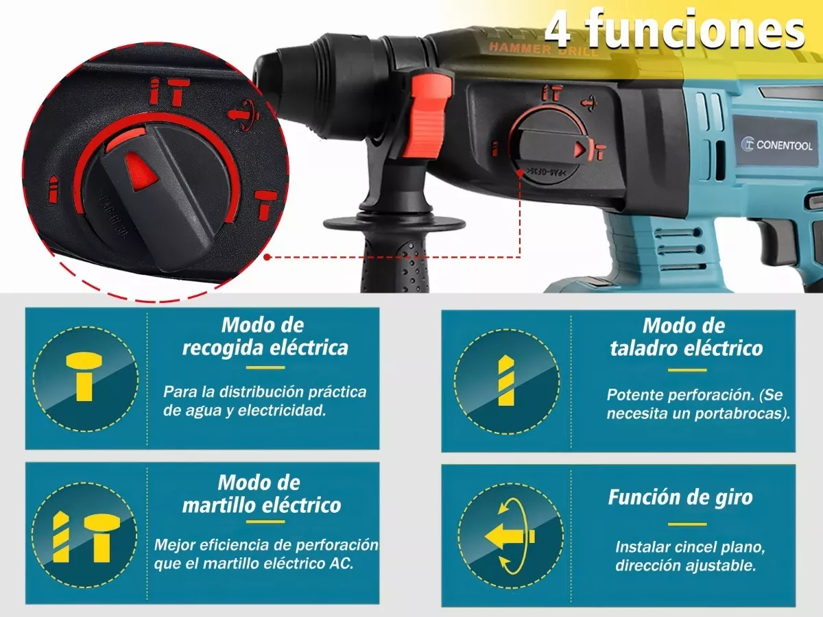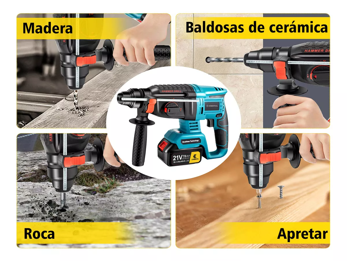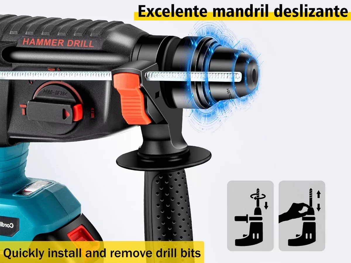 Cambie rápidamente entre los modos Martillo, Taladro y Cincel para una variedad de tareas. Profundidades de perforación de hasta Capacidad de perforación en acero: 15 mm, Capacidad de perforación en concreto: 28 mm, Capacidad de perforación en madera: 28 mm, Capacidad de perforación en mampostería: 20 mm, lo que lo hace ideal para proyectos de construcción y renovación.