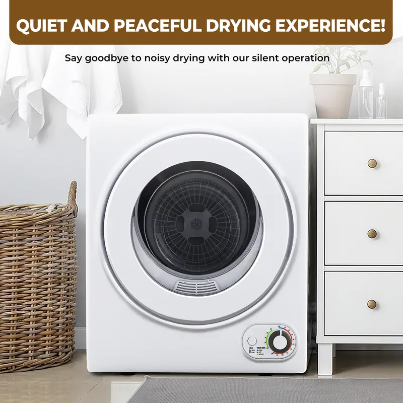 Secador de ropa portátil de 110V, compacto de 850W, máquina eléctrica de secado de ropa de carga frontal de 1.6 pies cúbicos con tubo de acero inoxidable para apartamentos, RVs, dormitorios, color blanco, fácil control